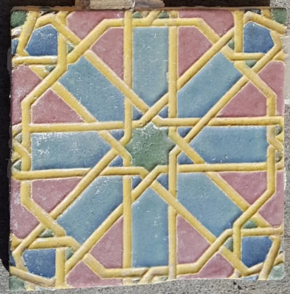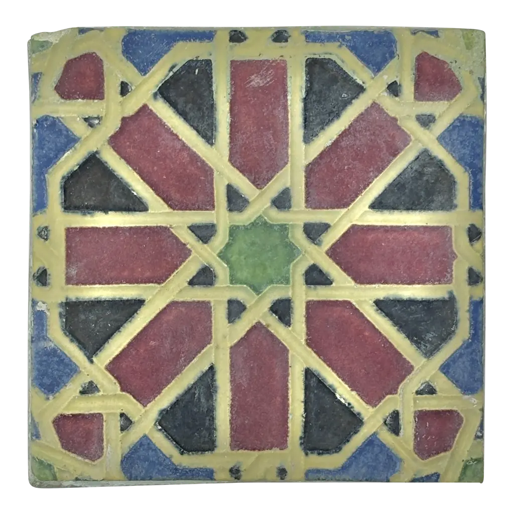 Reclaimed 1920's Early-California tile. 6" x 6" Moroccan Star pattern. Reclaimed from one of Coronado Island's historic estates, originally designed by renowned architect Richard Requa. 53 pieces available.