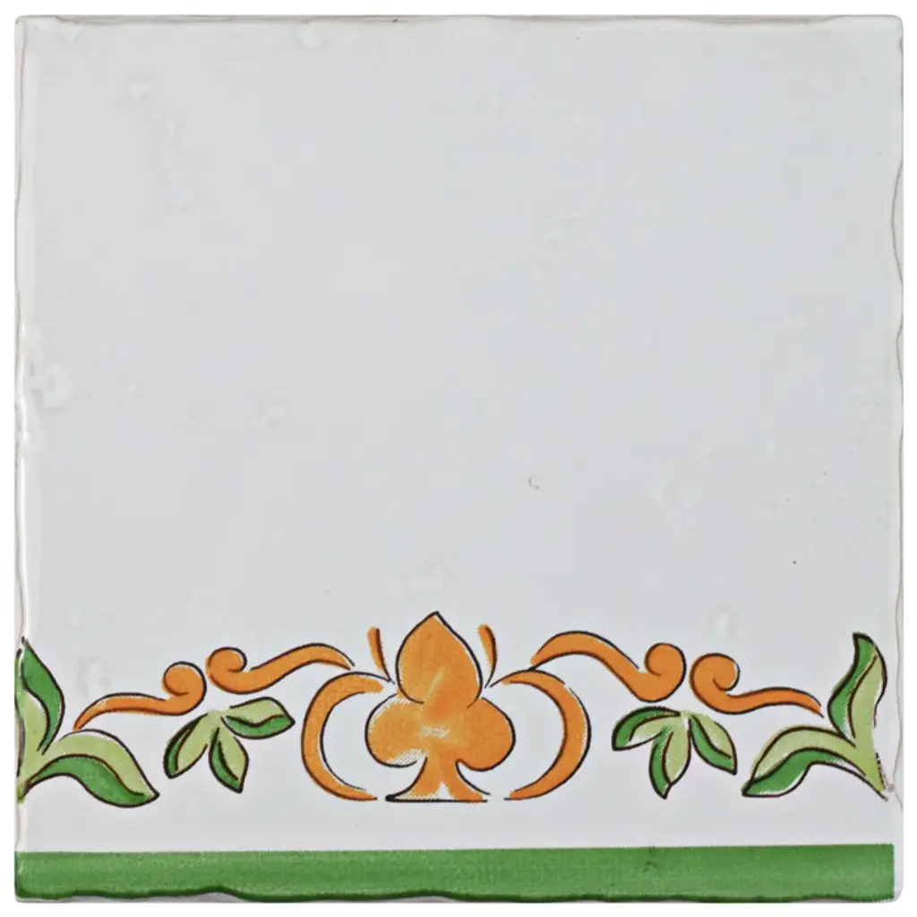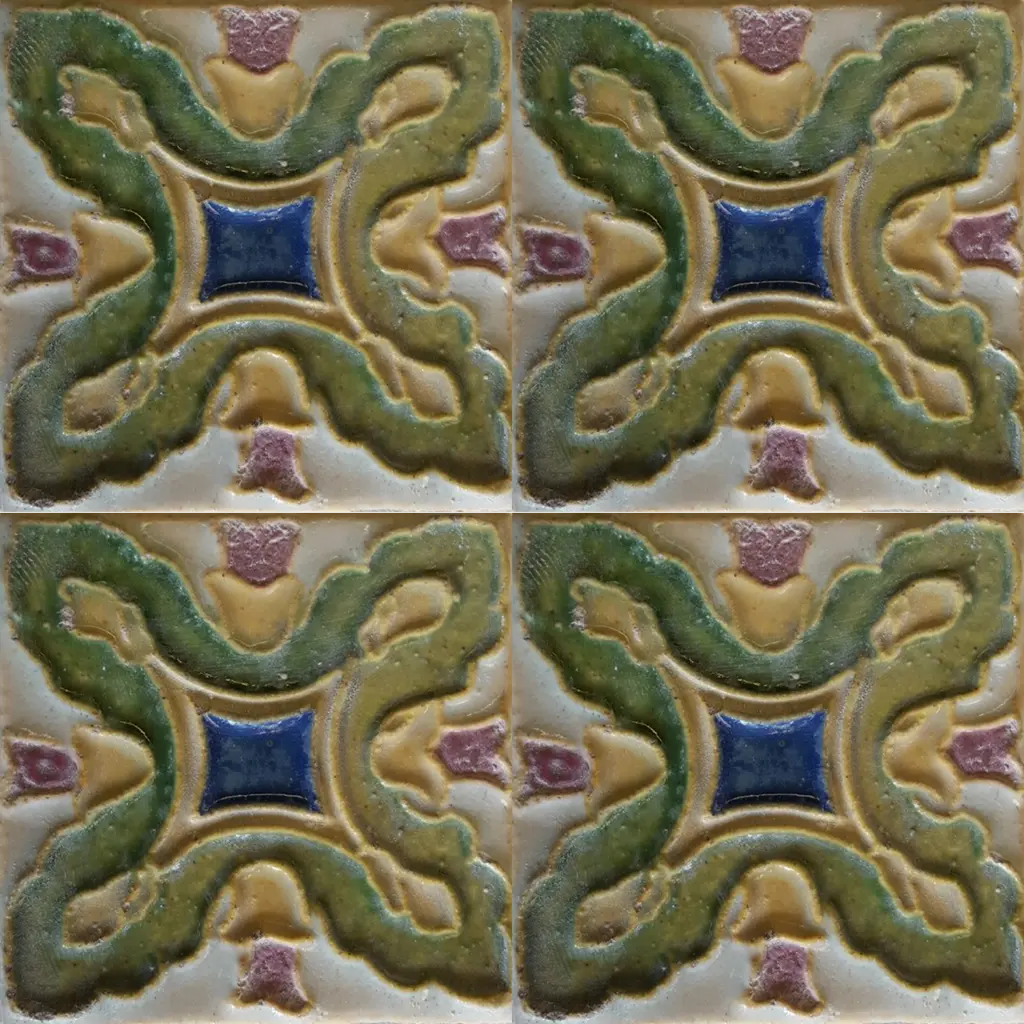 Reclaimed 1920's Early-California tile. 3" x 3" green, blue, red and white floral deco tile. Reclaimed from one of Coronado Island's historic estates, originally designed by renowned architect Richard Requa. 5 pieces available.