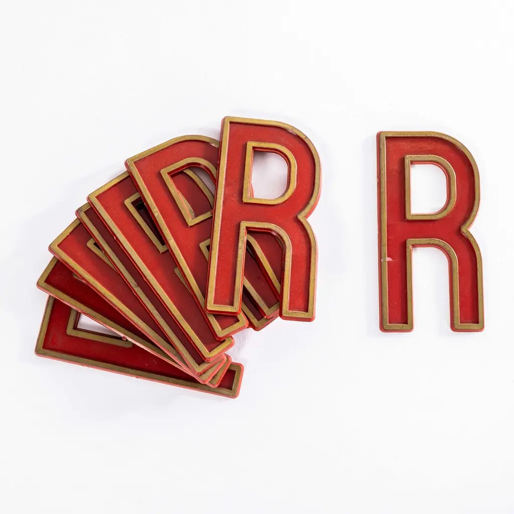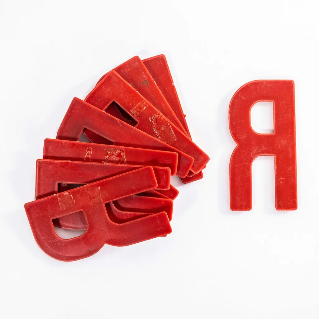 1930’s English Marquee Cinema Letter – R. Classic English cinema letters used at cinemas as signage for the film title, actors and so on. Made in acrylic plastic they slotted into tracks on the billboard. The term marquee comes from the French word Marquise, a name given by French soldiers in the 17th Century to a large fabric tent, and then adopted to cover the ‘tent’ like entrance over the entrance to cinemas and theatres. Listing is for one letter as shown. Judging by the condition, these are new old stock or certainly rarely used.Workshop Report:Our workshop team inspect every product and carry out any needed repairs to ensure that everything leaves us serviced and maintained ready for many more years of life. All of our vintage products show the rich beauty and history of their life with the knocks and bumps of many years of use and we try to minimise restoration to keep every piece as original as possible.Date:1930'sMaker:Industrial Production – EnglandDimensions:5.5cm(w) x 10.5cm(l) x 0.2cm(h)
