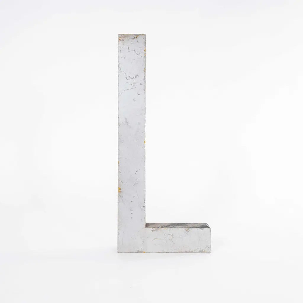 1950’s Medium Size Cast Aluminium Sign Letter – L. Heavy quality American cast aluminium signage letter. Listing as photographed. Other group images are included for inspiration.Workshop Report:Our workshop team inspect every product and carry out any needed repairs to ensure that everything leaves us serviced and maintained ready for many more years of life. All of our vintage products show the rich beauty and history of their life with the knocks and bumps of many years of use and we try to minimise restoration to keep every piece as original as possible.Date:1950'sMaker:Industrial ProductionDimensions:31cm(w) x 50.5cm(l) x 5.5cm(h)
