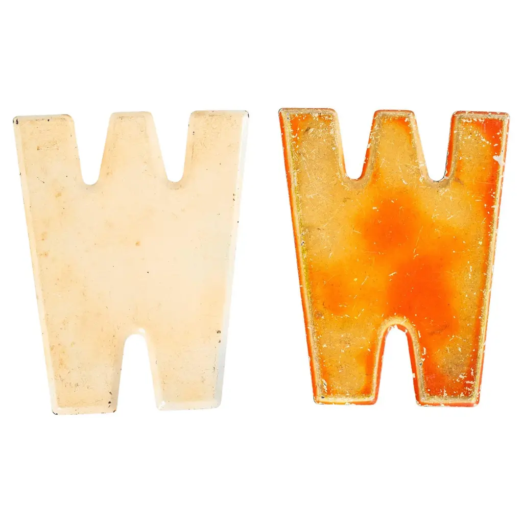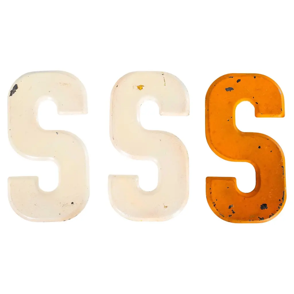 1950’s American Vintage Gas Station Enamel Marquee Letter – D. We sourced these from an old gas station in America, thought to be from the 50’s and 60’s. We have a number of colours/conditions for each letter and number, all of which are shown in the images. There are additional images of all the letters and numbers together for inspiration. This listing is for a single letter or number as shown and photographed , the letter selection is random from the batch of that colour and letter. If you have a preferred colour please specify in the order notes and we will do our best to assist.Workshop Report:Our workshop team inspect every product and carry out any needed repairs to ensure that everything leaves us serviced and maintained ready for many more years of life. All of our vintage products show the rich beauty and history of their life with the knocks and bumps of many years of use and we try to minimise restoration to keep every piece as original as possible.Date:1950'sMaker:Industrial ProductionDimensions:10cm(w) x 19cm(l) x 0.4cm(h)