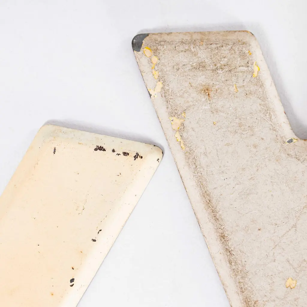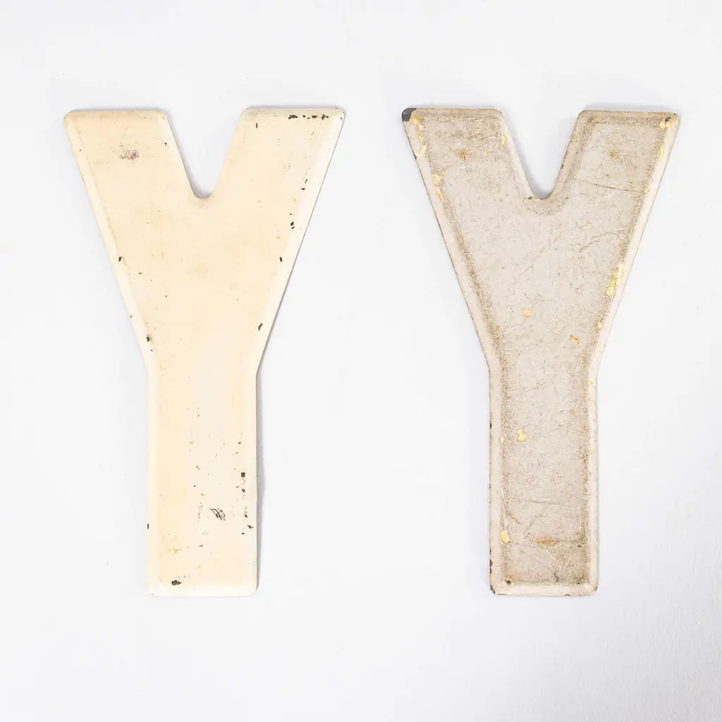 1950’s American Vintage Gas Station Enamel Marquee Letter – Y. We sourced these from an old gas station in America, thought to be from the 50’s and 60’s. We have a number of colours/conditions for each letter and number, all of which are shown in the images. There are additional images of all the letters and numbers together for inspiration. This listing is for a single letter or number as shown and photographed, the letter selection is random from the batch of that colour and letter. If you have a preferred colour please specify in the order notes and we will do our best to assist.Workshop Report:Our workshop team inspect every product and carry out any needed repairs to ensure that everything leaves us serviced and maintained ready for many more years of life. All of our vintage products show the rich beauty and history of their life with the knocks and bumps of many years of use and we try to minimise restoration to keep every piece as original as possible.Date:1950'sMaker:Industrial ProductionDimensions:10cm(w) x 19cm(l) x 0.4cm(h)