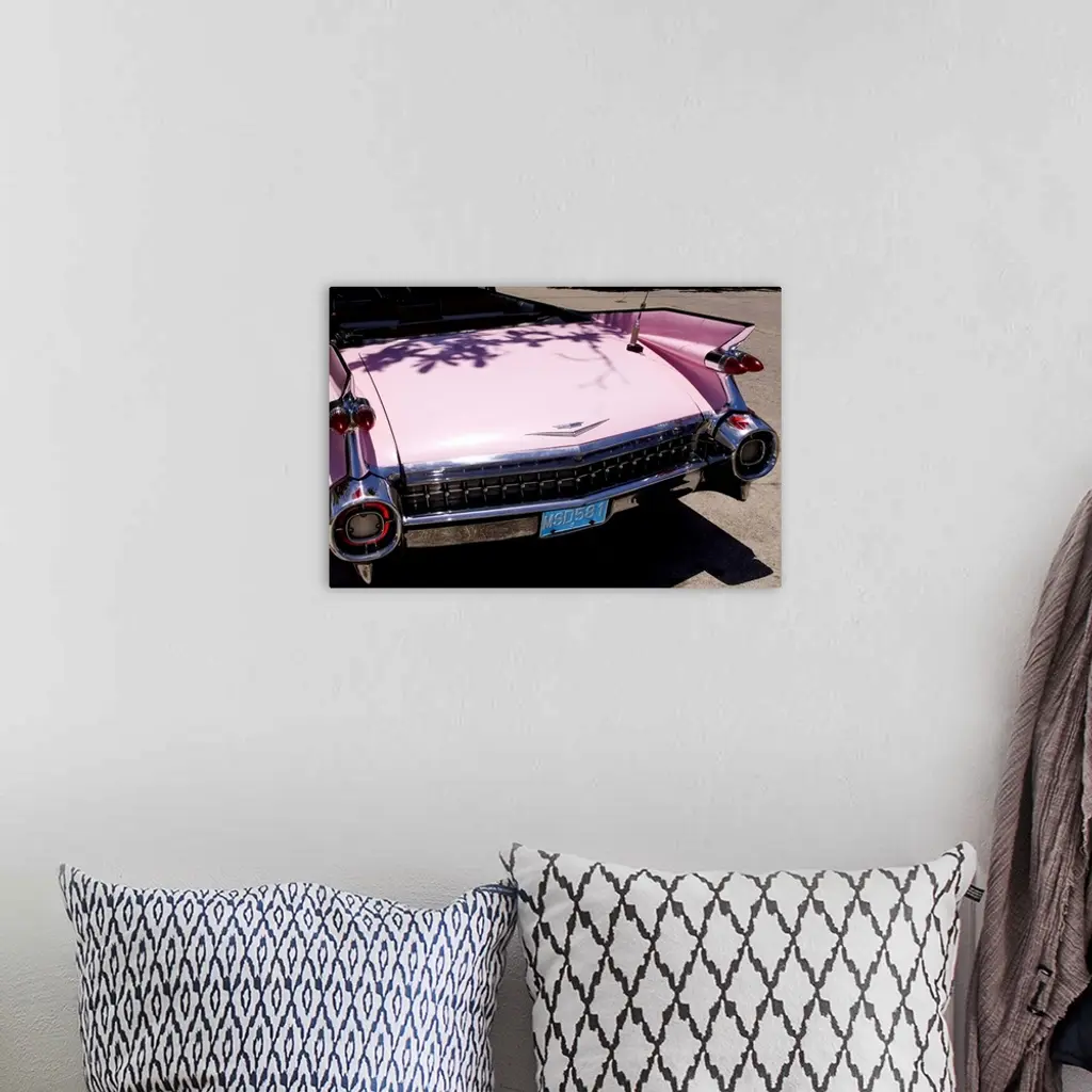 1959 Pink Cadillac Convertible On Road In Beautiful Varadero Beach In Valadero, Cuba