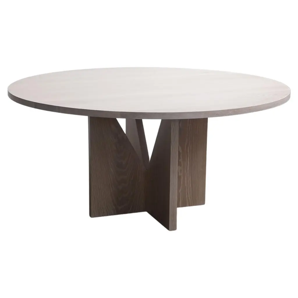 A bold play of lines and planes characterizes our 1960s French X-Base collection designed by Luay Al-Rawi. The geometric base, an artful junction of dramatically raked legs, balances a substantial top, lending a striking, architectural sensibility. Crafted of oak, the wood's rich, rustic texture is a counterpoint to the linear look. SHOP THE ENTIRE COLLECTION