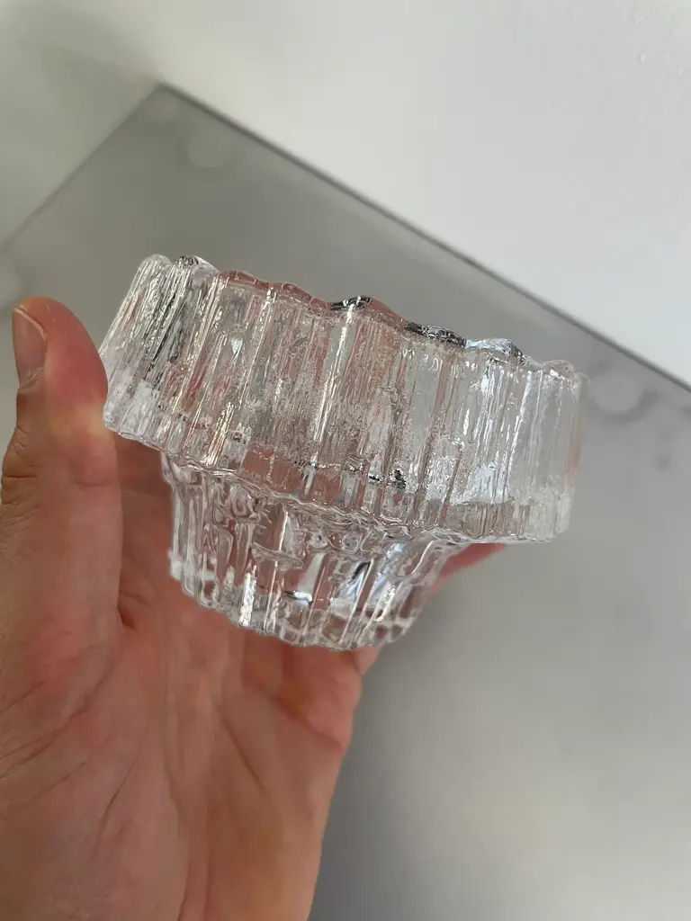 ‘Stellaria’ candle tealight holder by Tapio Wirkkala for Iittala, c. 1970 Clear textured glass. Excellent condition. 4 available.