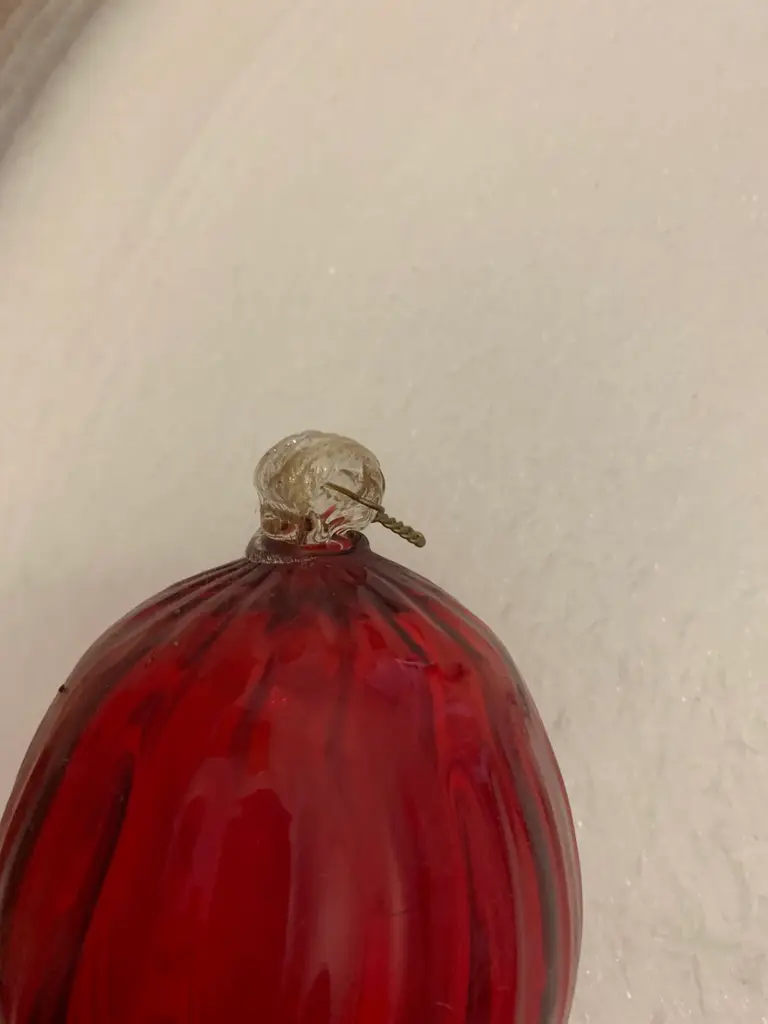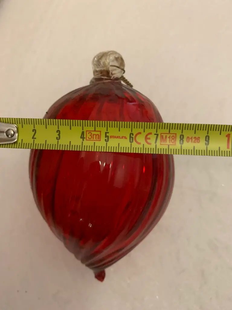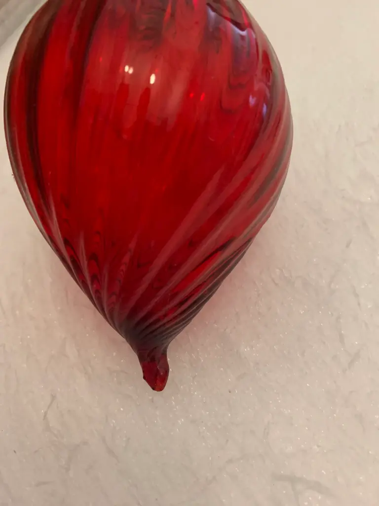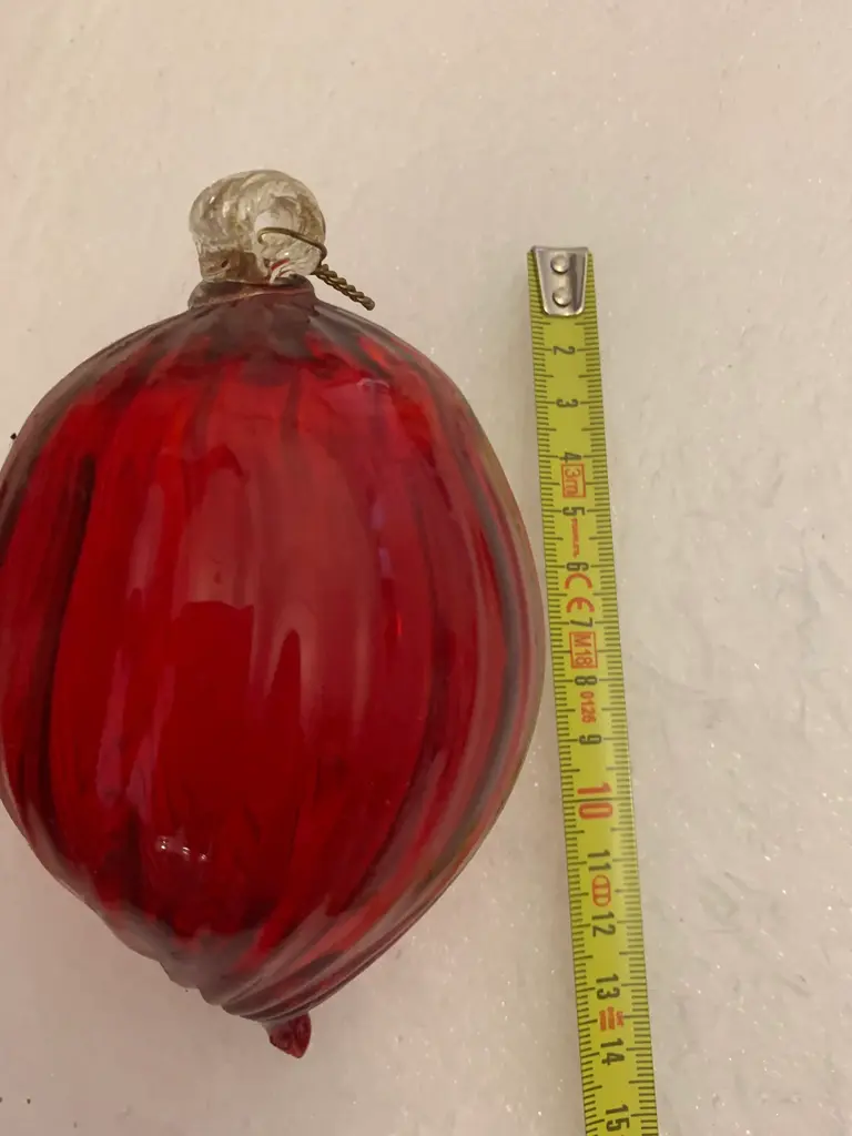 Vintage and Rare Red Christmas Ball From Made Murano Glass, Italy 1970 Description Murano glass drops Vintage and Rare Red Christmas Ball From Made Murano Glass unique and rare vintage ball all glass are very old all are different one by one and all are handmade blow !!!!! Diameter 7 cm = 2.75" around (size will be little different one by one are handmade ) height 13 cm = 5.11" around (size will be little different one by one are handame ) ship from italy all balls are different and unique ....not the same !!!!shapes and sizes !!!! handmade blow less