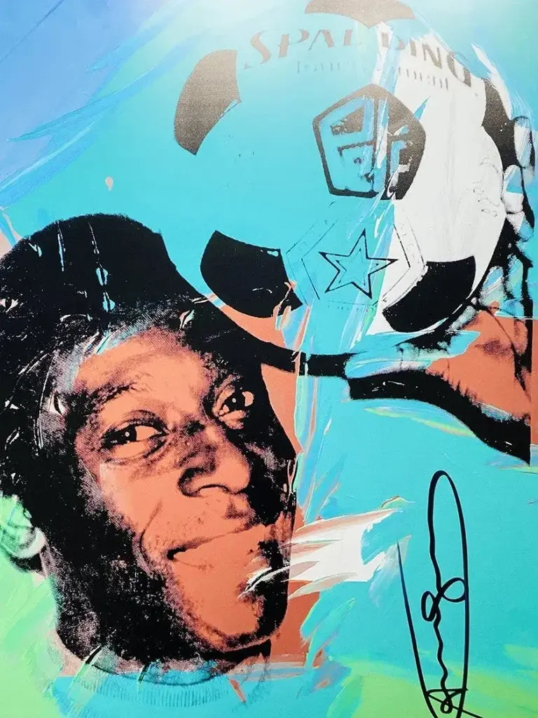 1986 Carnegie Museum of Andy Warhol - Pelé Lithograph Portrait signed numbered print, stamp authenticated by the editor.