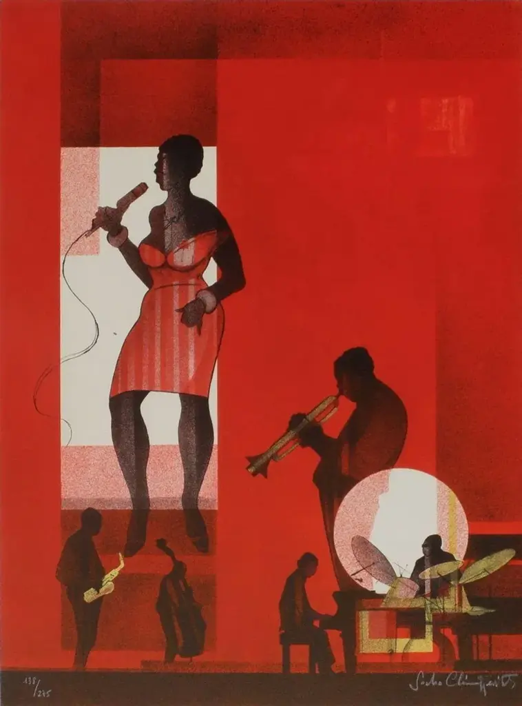 1990s Sacha Chimkevitch Hot Swing Lithograph