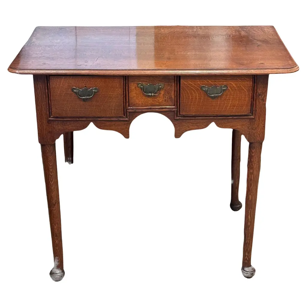 19th c. Pine one drawer stand with original faux tiger maple decorated paint. Slightly bowed single board top over drawer with brass pull, terminating on lightly tapered legs. Quebec.