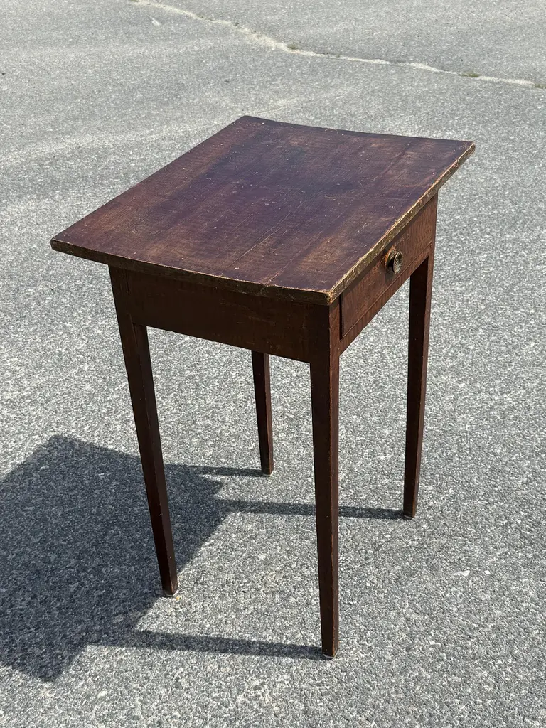 19th C. Pine Single Drawer Stand With Faux Tiger Maple Paint