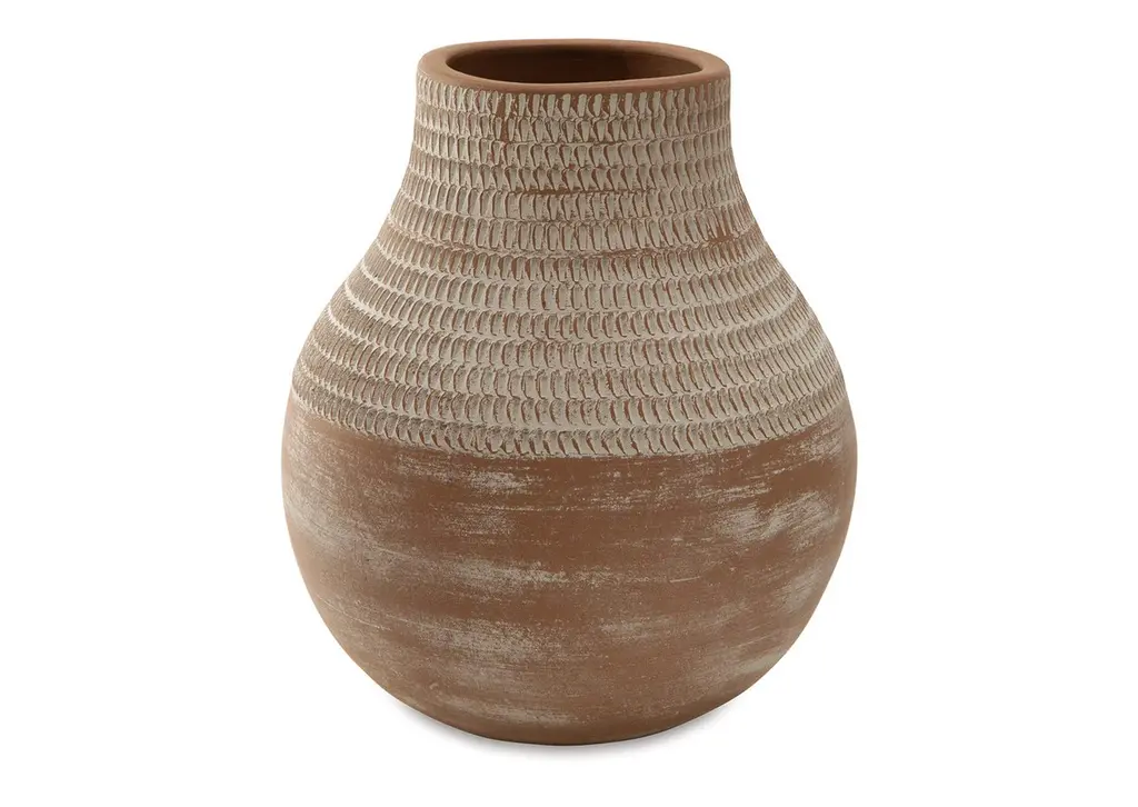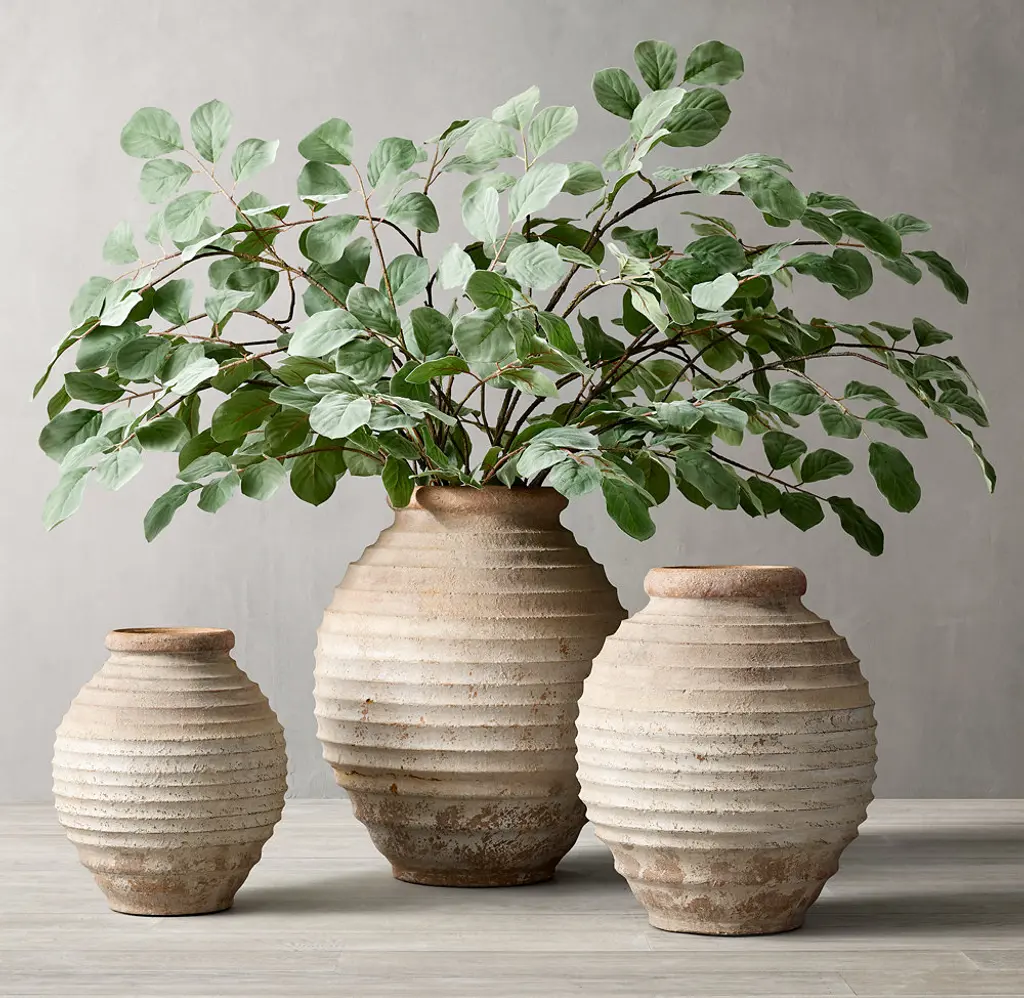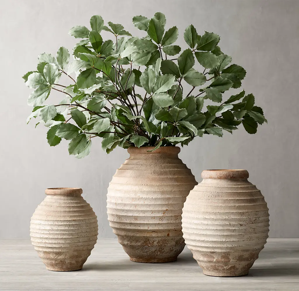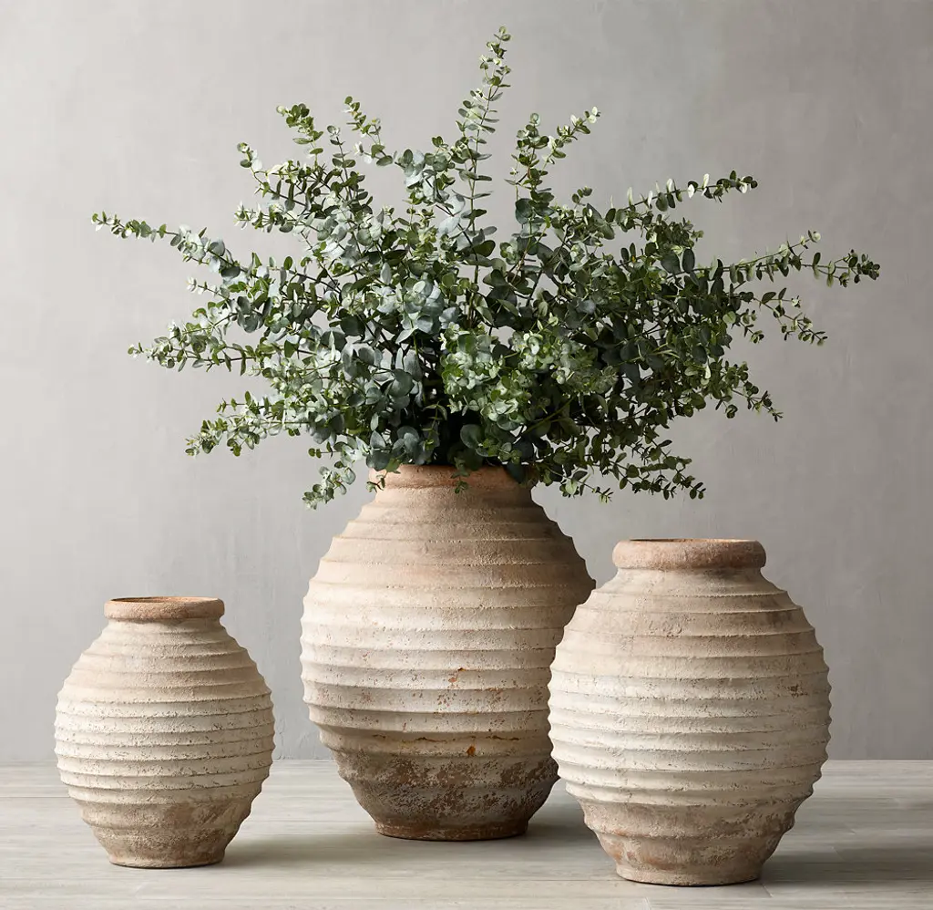 Our primitive vessel was hand cast from an original Turkish terra-cotta jar, traditionally used for transporting olives and other fruit. Meticulously crafted of concrete composite, our version faithfully replicates the sun-baked color, weathered patina and ribbed, rough-hewn texture of the original.