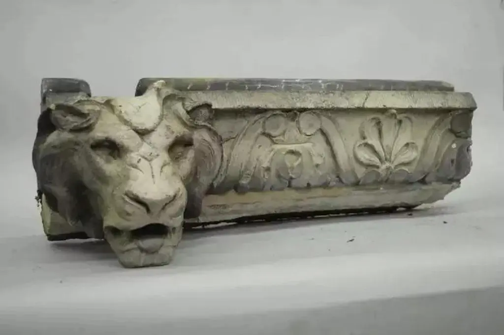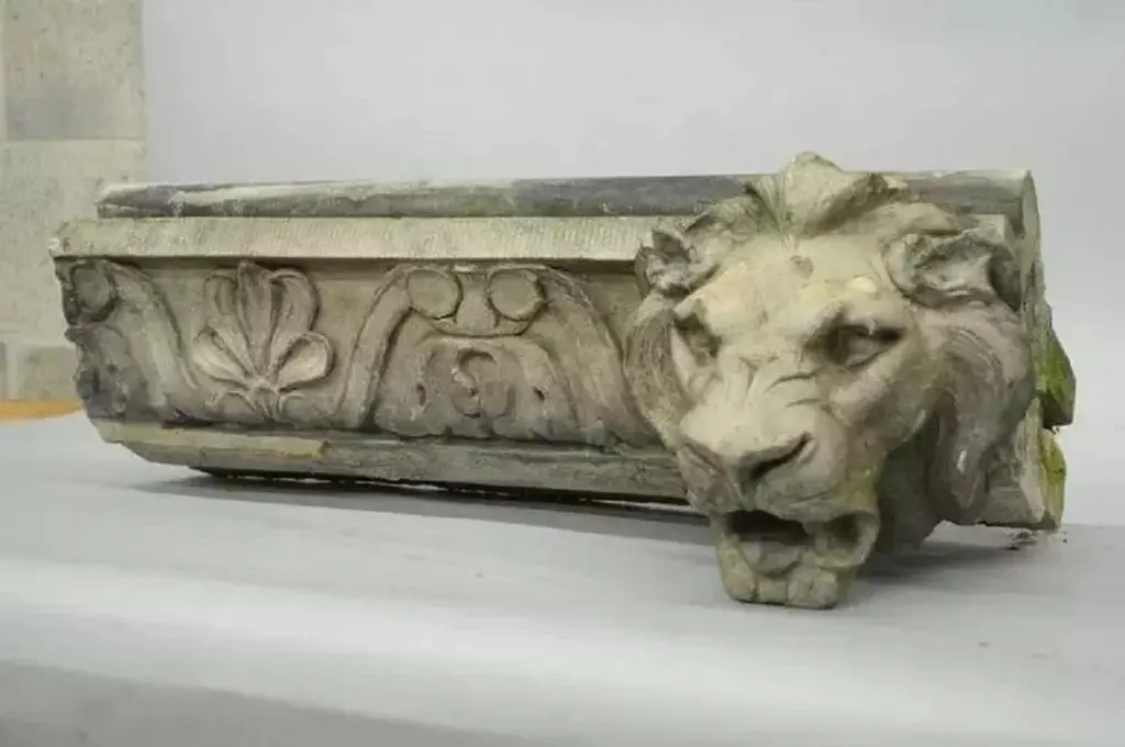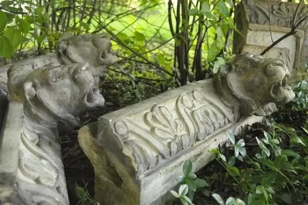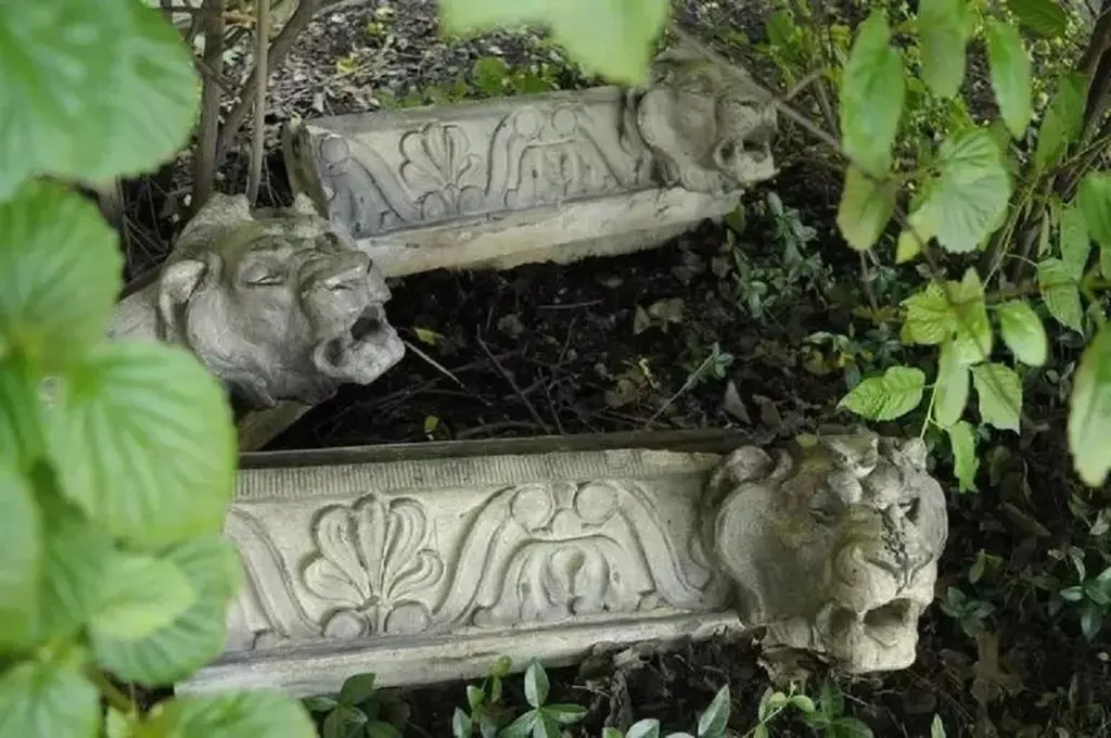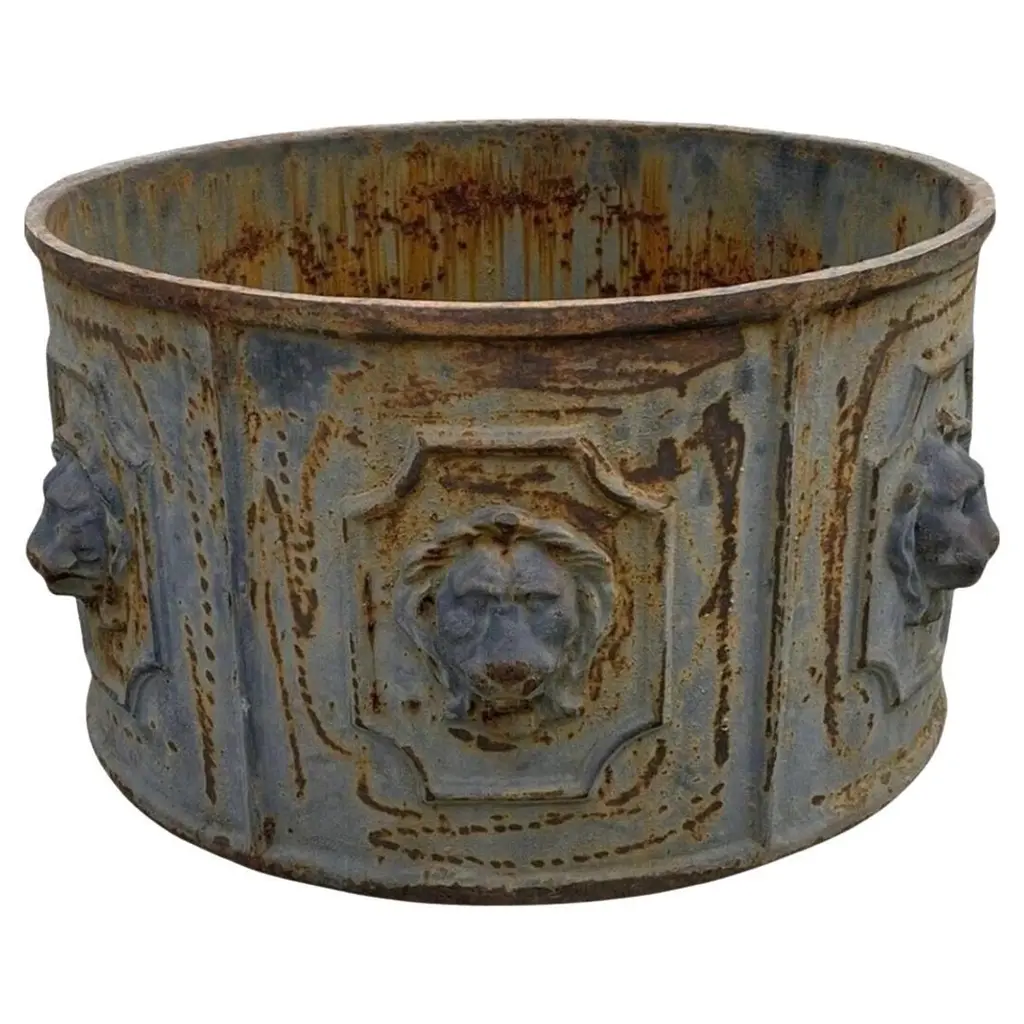 19th C. Terracotta Lion Head Regency Style Building Garden Architectural Elements. Items are decorated with finely cast lion heads, stylized Fleur-de-lis and scroll work, and beautiful and authentic weathered patina. Great for use as decorative indoor or outdoor garden elements. Each element weighs approximate 50 lbs and are approximate 22" - 26" Long. (There are 9 rights and 2 lefts. Price is per item.) Circa Late 19th Century. Measurements: 12" H x 24" W x 11" D.