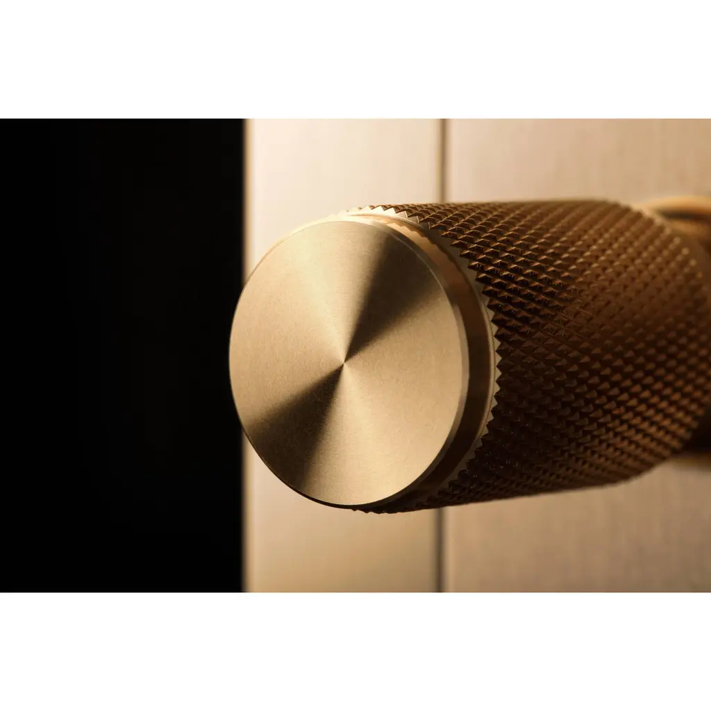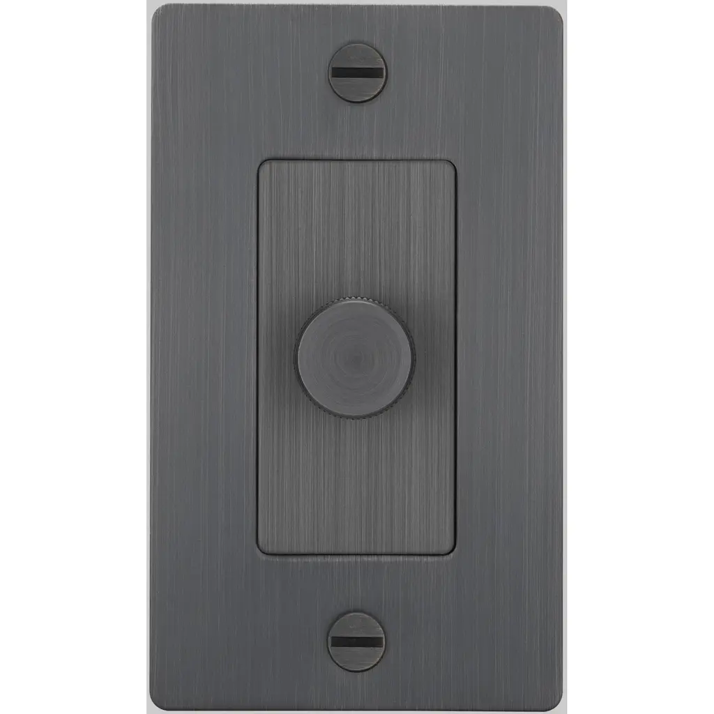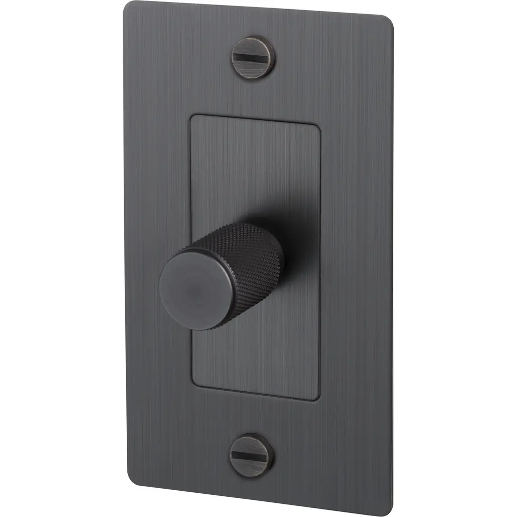 A dimmer switch finished in smoked bronze. The dimmer knob features our signature, diamond-cut, cross knurl pattern and is made from solid smoked bronze.