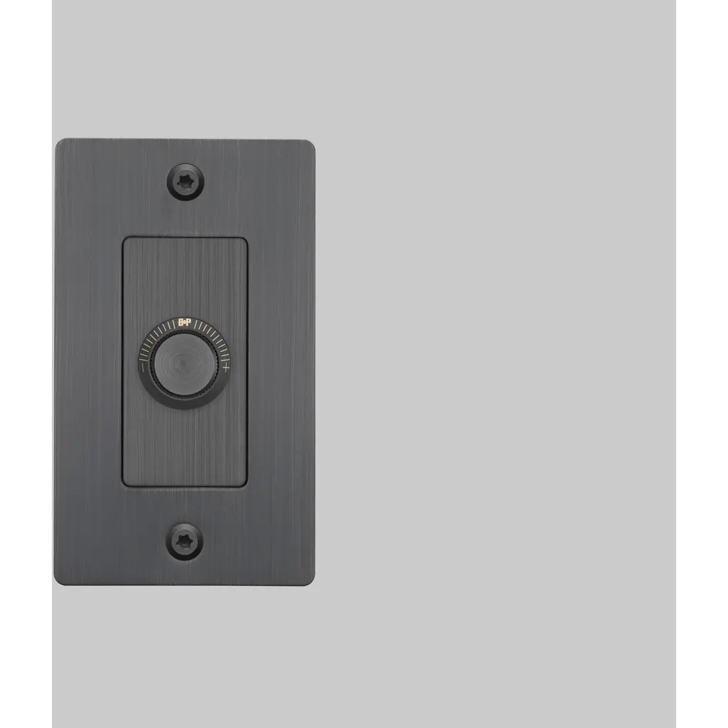 A dimmer switch finished in smoked bronze. The dimmer knob features our newest signature, linear knurl pattern and is made from solid smoked bronze.