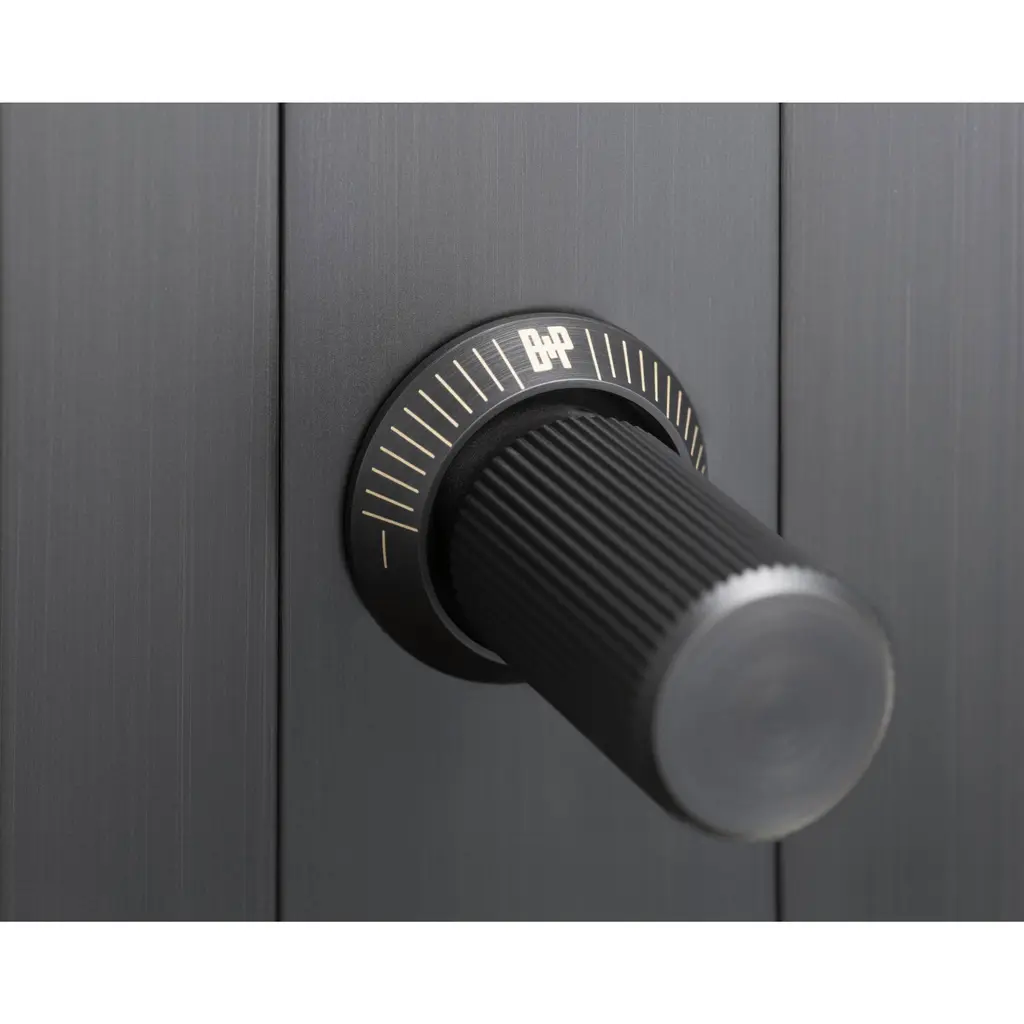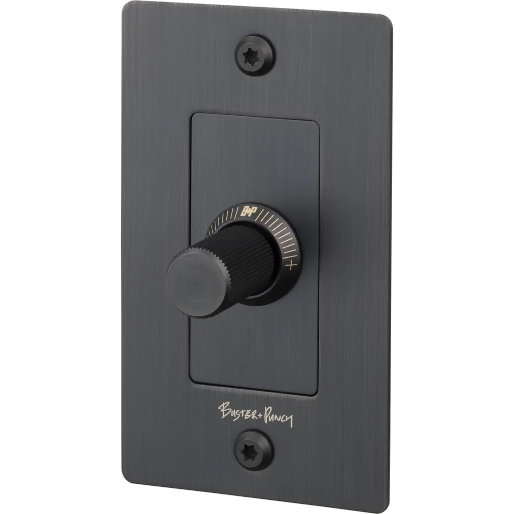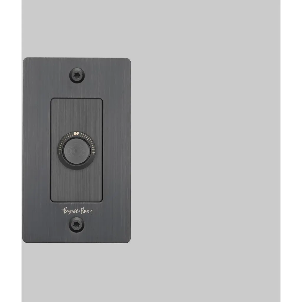 A dimmer switch finished in smoked bronze. The dimmer knob features our newest signature, linear knurl pattern and is made from solid smoked bronze.