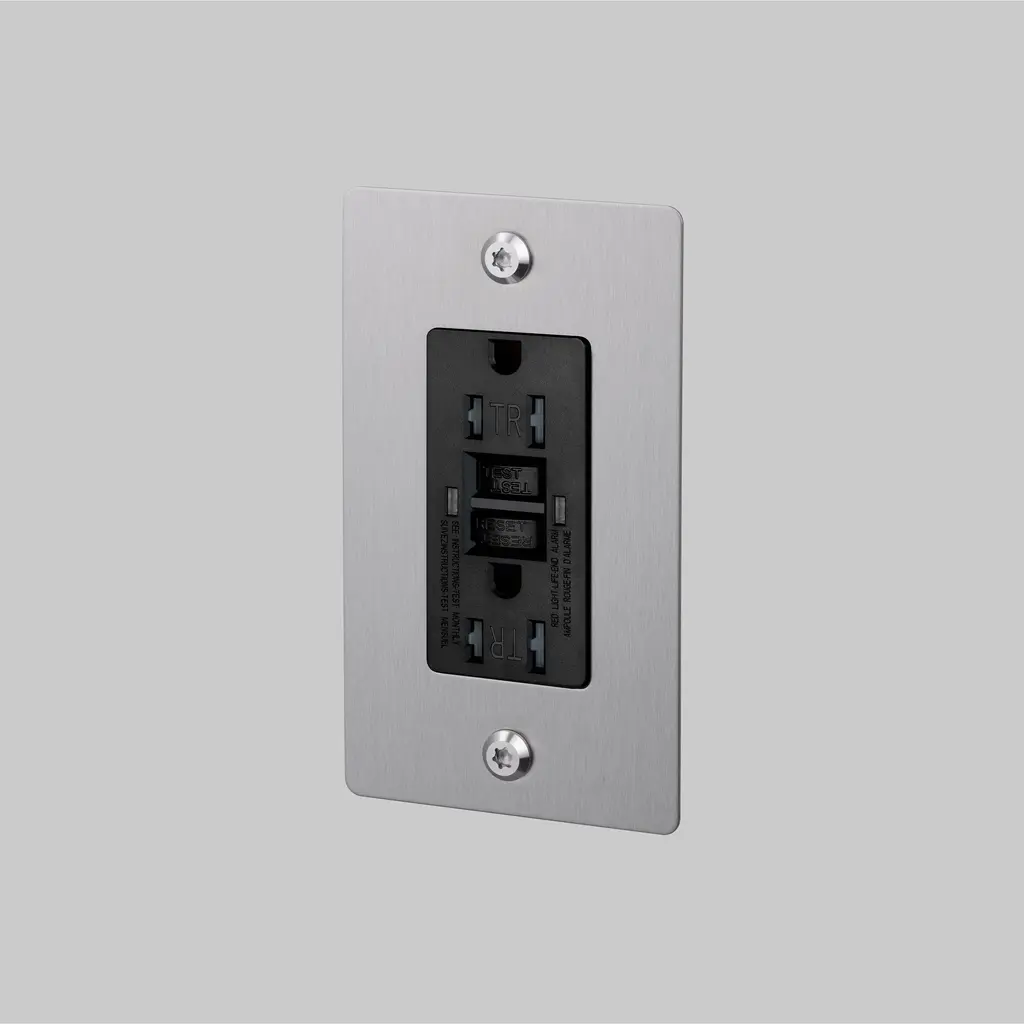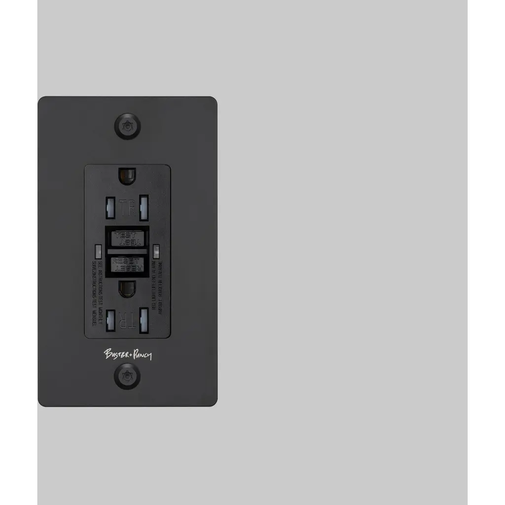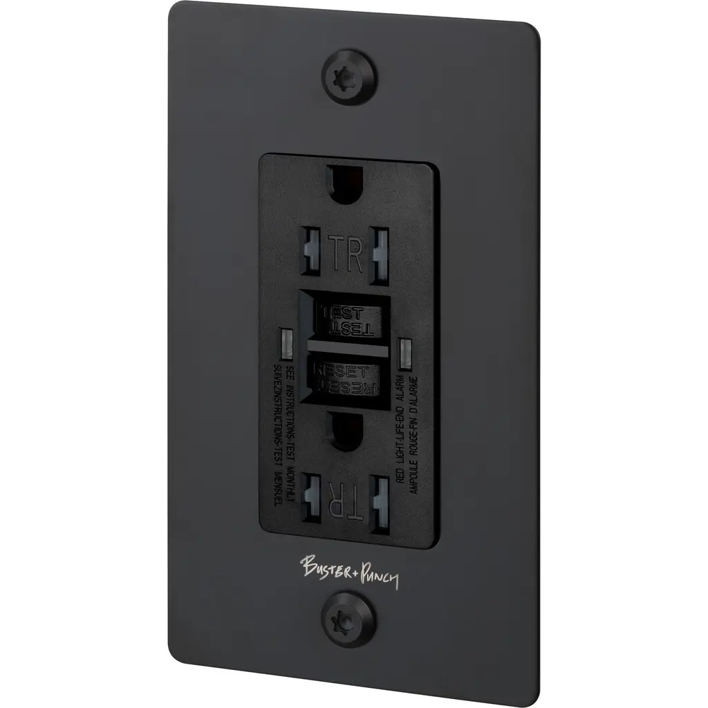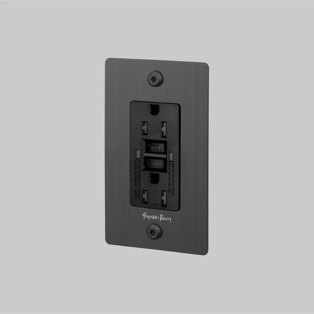 A GFCI outlet finished in black and featuring our solid metal coin screws.FYI: This piece has a 4 mm shadow gap when installed.