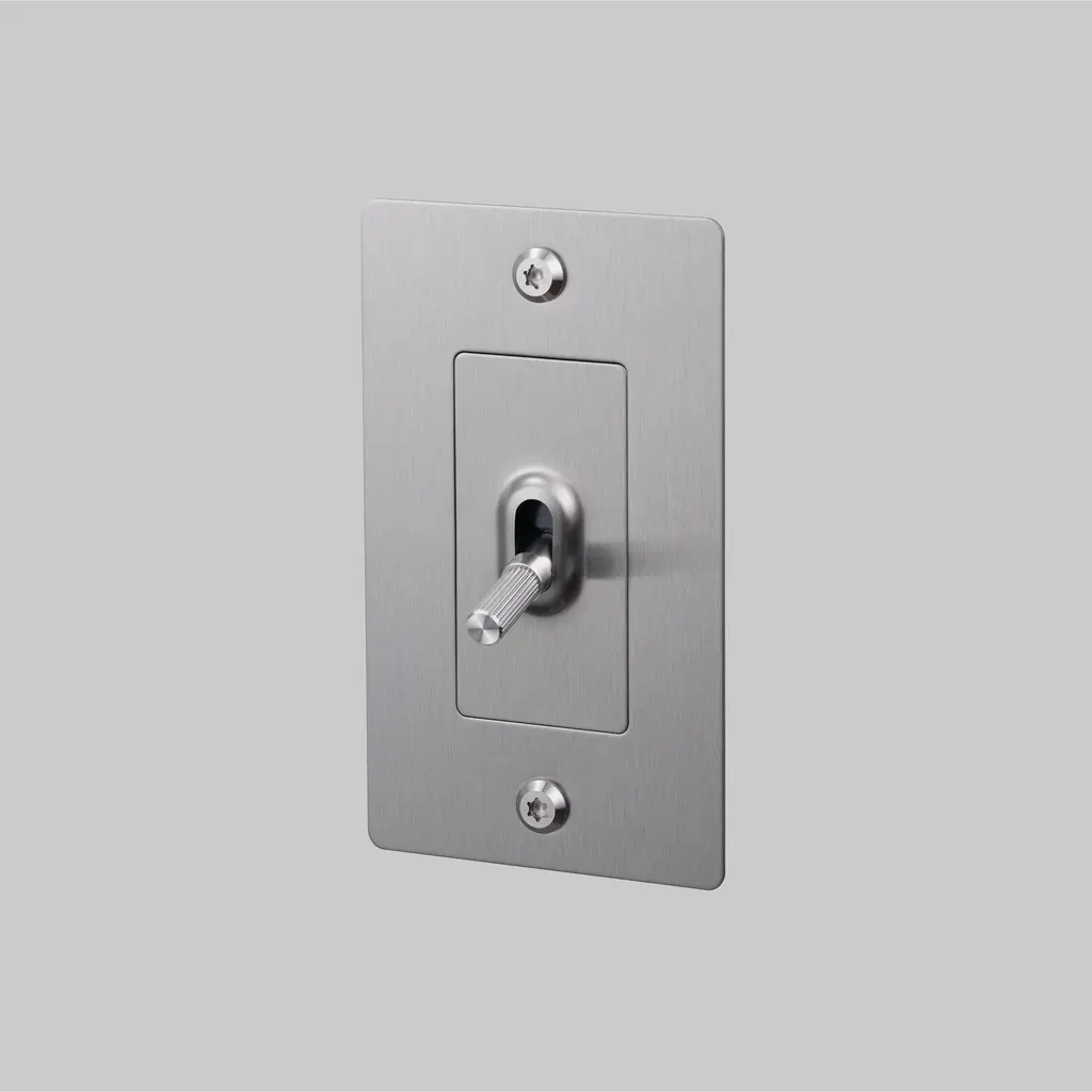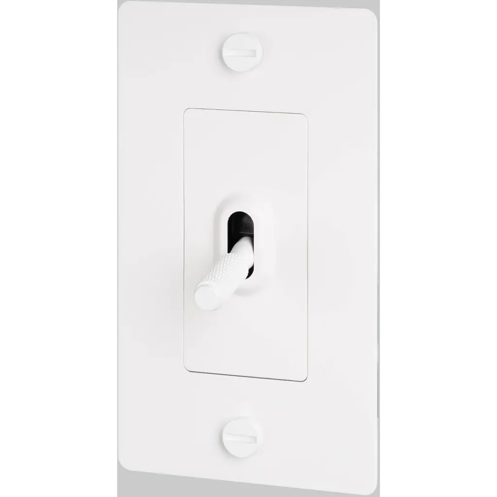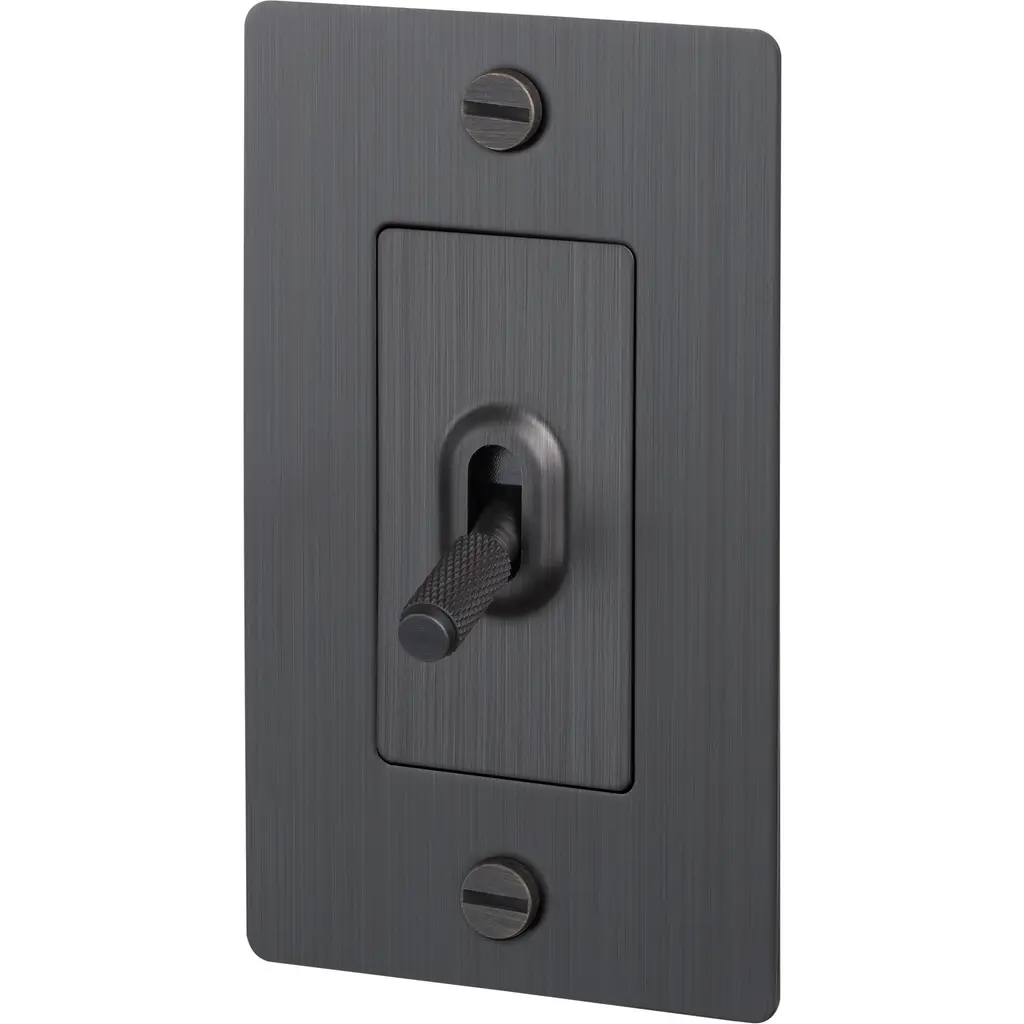 A toggle switch finished in black. The toggle arm features our signature, diamond-cut, cross knurl pattern and is made from solid black anodised metal.