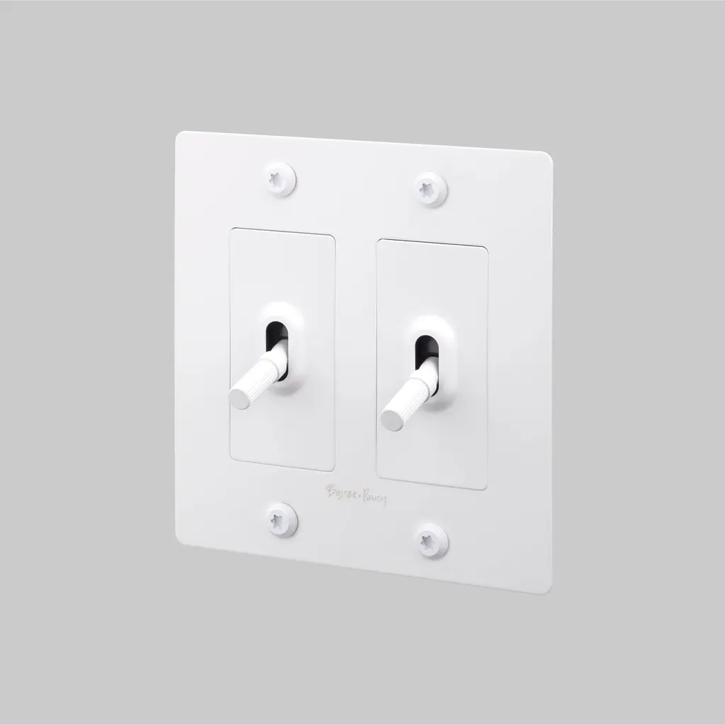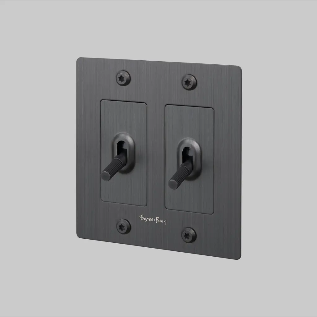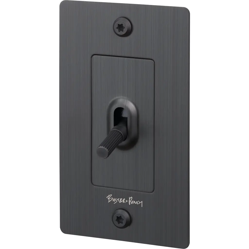A toggle switch finished in smoked bronze. The toggle arm features our newest signature, linear knurl pattern and is made from solid smoked bronze.