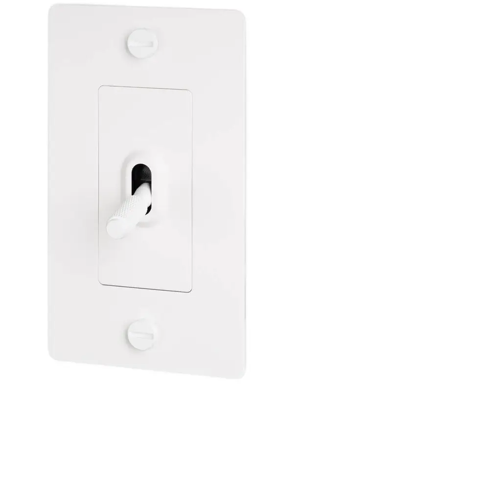 A toggle switch finished in black. The toggle arm features our signature, diamond-cut, cross knurl pattern and is made from solid black anodised metal.