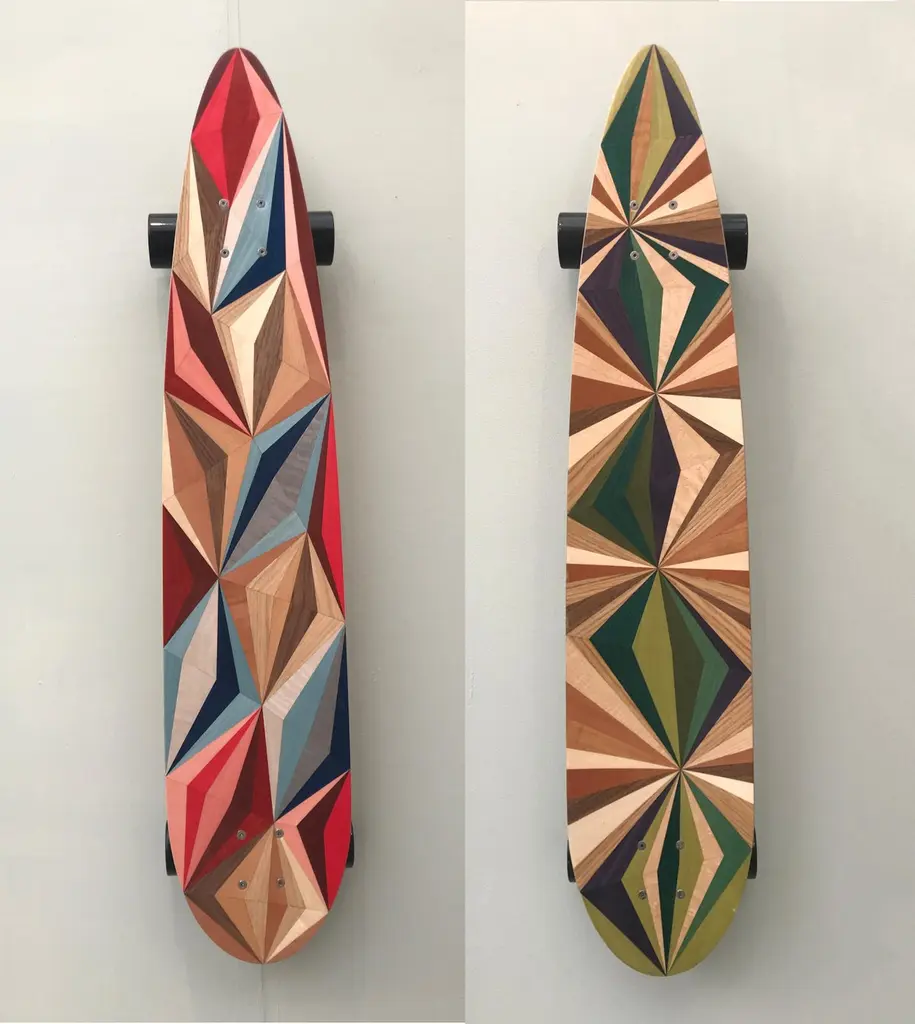 1M Marquetry Pintail Longboard. Handcrafted Skateboards From W O O D P O P.