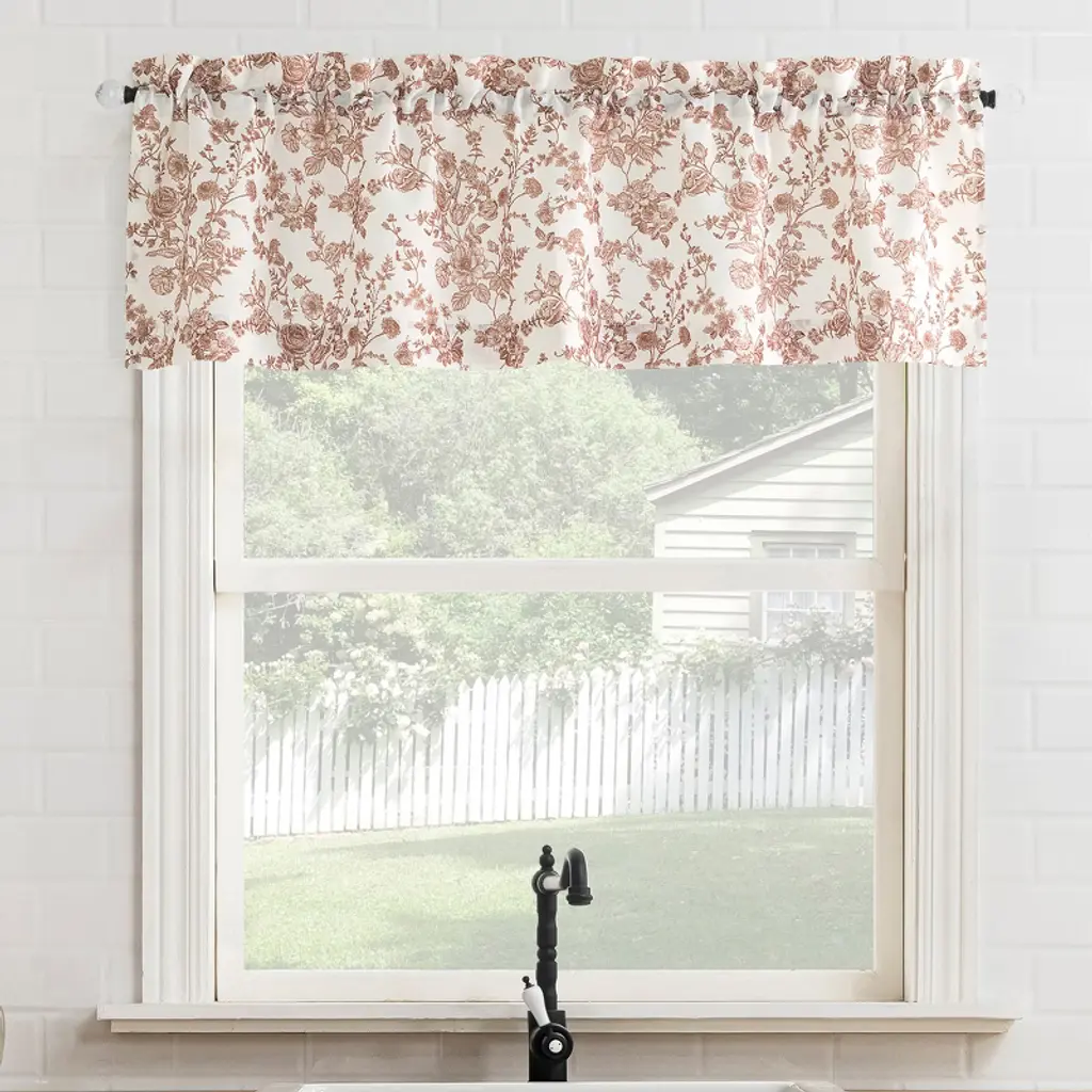1Pc 50"x18" Sun Zero Bronte Floral Jacquard 100% Blackout Rod Pocket Curtain Valance Terracotta