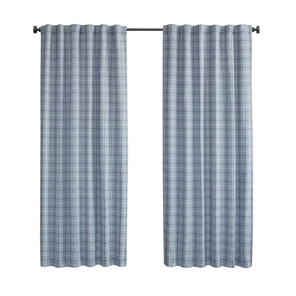 1Pc 50x95in Plaid Rod Pocket And Back Tab Curtain Panel With Fleece Lining
