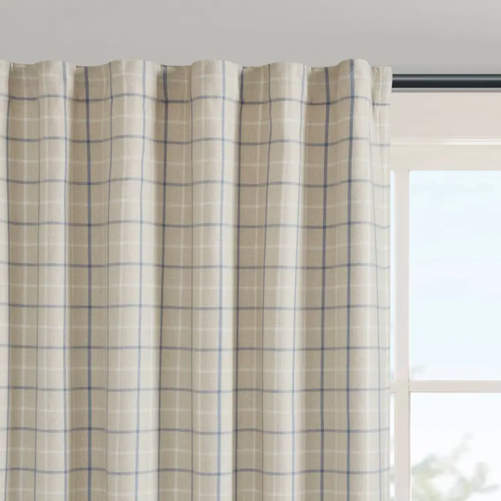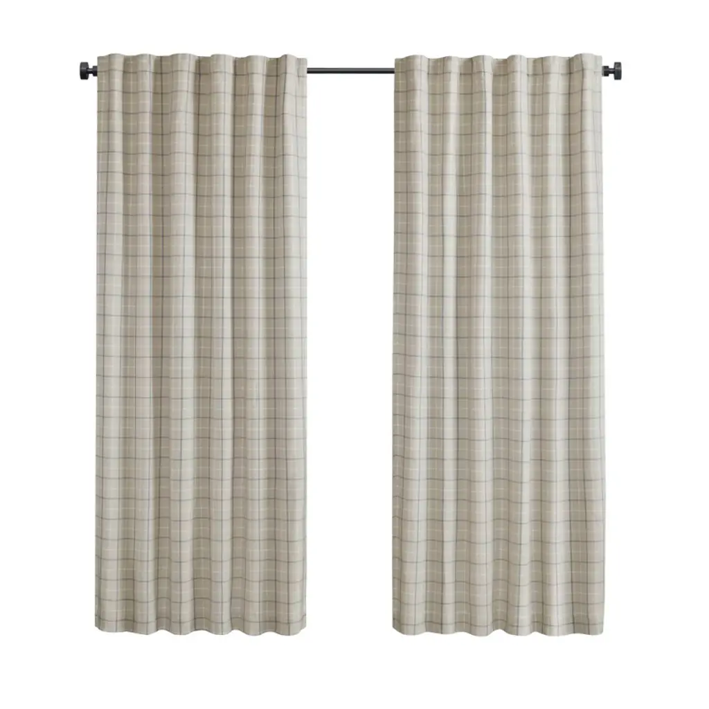1Pc 50x95in Plaid Rod Pocket And Back Tab Curtain Panel With Fleece Lining