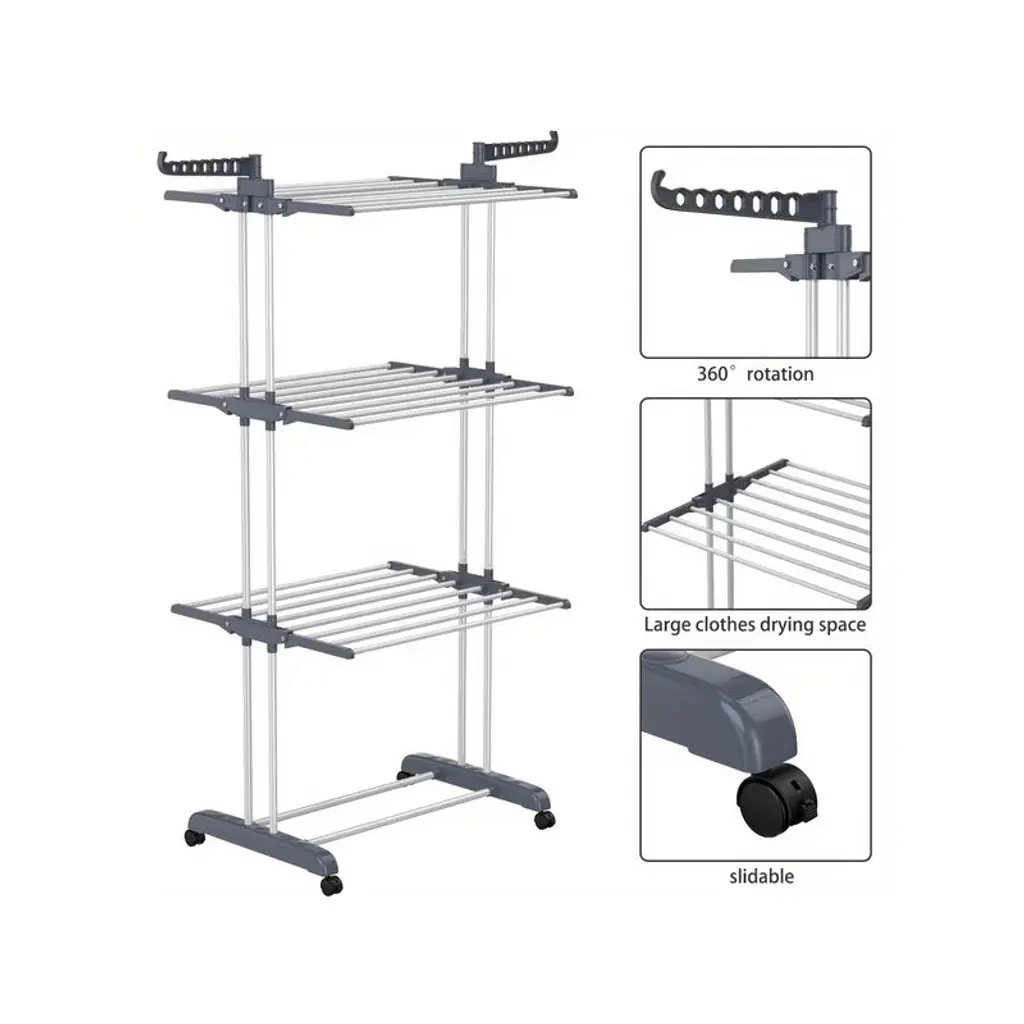 1Pc Clothes Drying Rack, Indoor, Outdoor Laundry Drying Rack, Space Saving, Laundry Hanger Dryer Rack, Includes 2 Packs Of Stainless Hangers