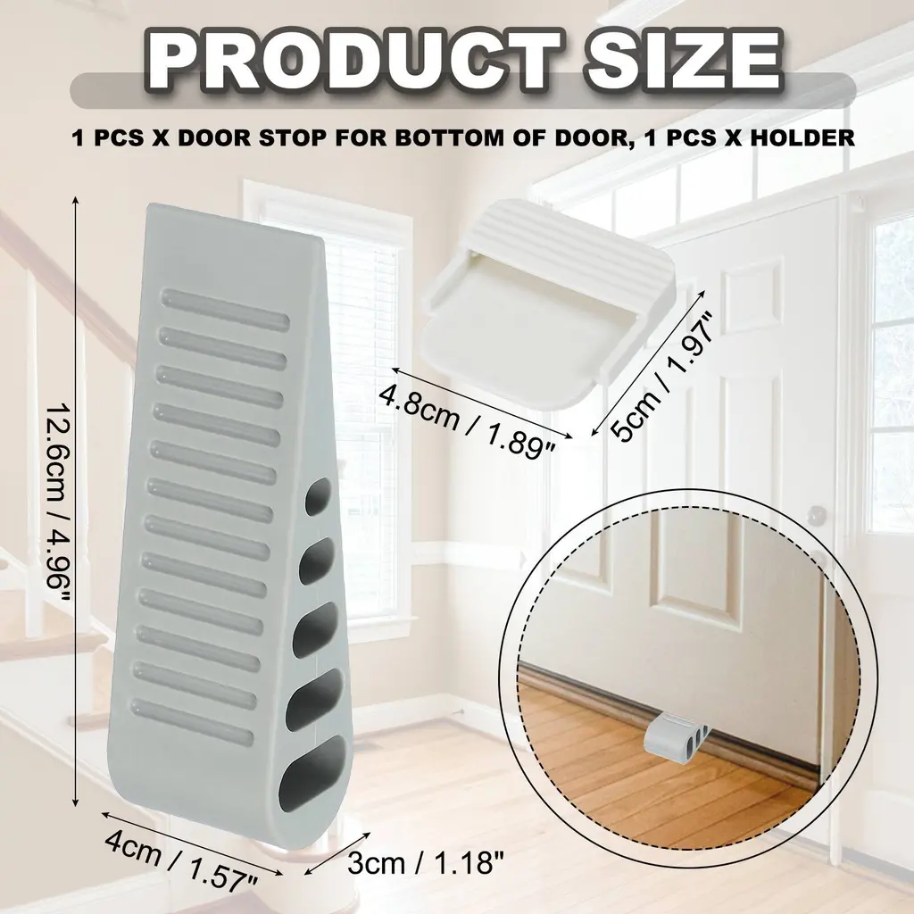 1Set Rubber Door Stopper Wedge Door Stop For Bottom Of Door With Holder - Gray