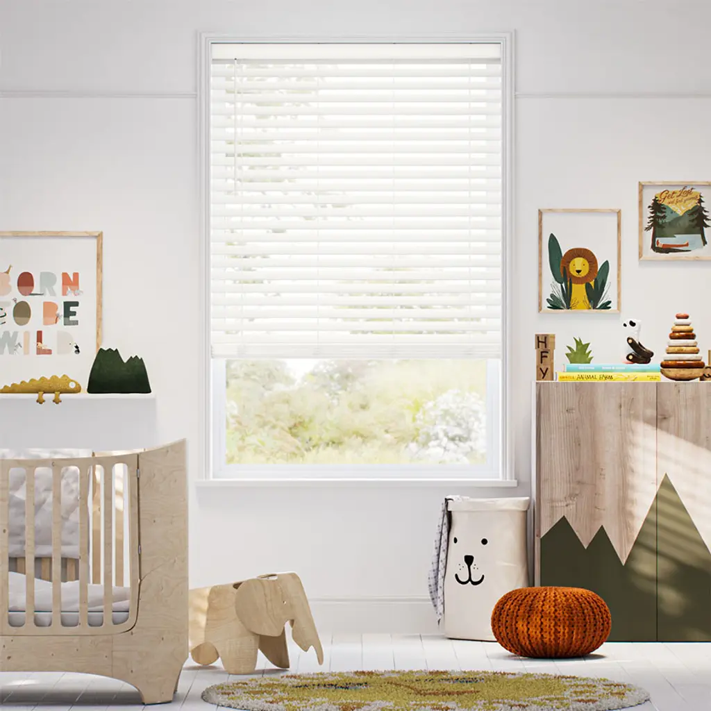 2.5” Timeless Cordless Faux Wood Blinds – Style and Durability Combined Enhance your windows with the 2.5” Timeless Cordless Faux Wood Blinds, available in a crisp frosted white finish and a range of set sizes to suit your needs. These blinds offer a perfect blend of practicality, elegance, and lasting durability. Designed to complement any space, from kitchens and bathrooms to living rooms and bedrooms, their sleek design and convenient cordless operation make them an ideal choice for modern homes.