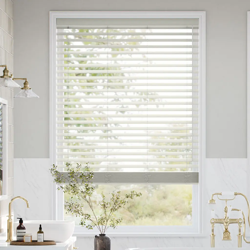 2 1/2” Urban Shutter Slat – Classic Shutter Style with Horizontal Blind Flexibility Bring the refined look of shutters to your windows with the 2 1/2” Urban Shutter Slat blinds. These cordless faux wood blinds combine the functional ease of traditional blinds with shutter-style beveled slats for a sophisticated, sculpted look. Ideal for kitchens, bathrooms, and high-humidity spaces, they offer durability, UV protection, and elevated style all in one.