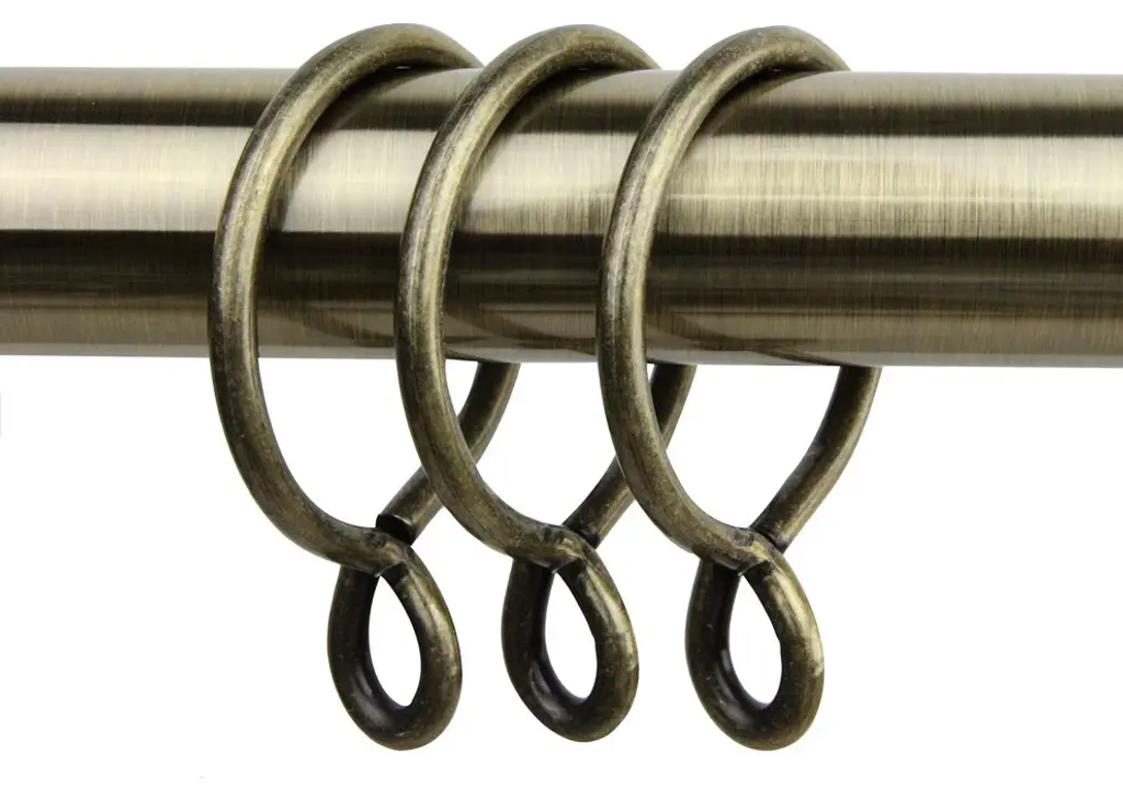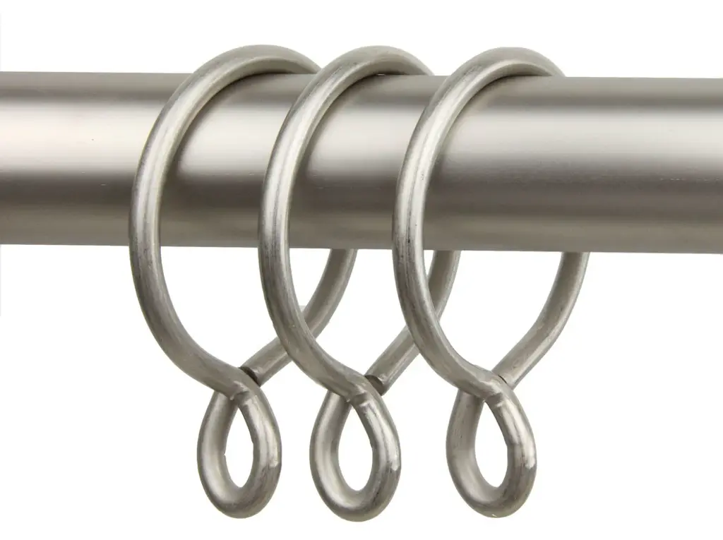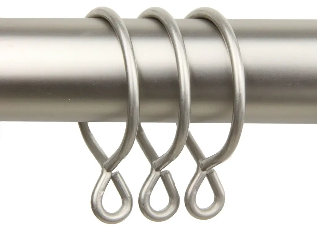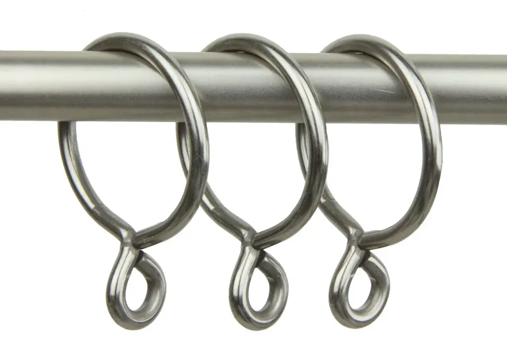 Set includes 10 curtain rings with an inside diameter of 2-1/4" Fits poles up to 2" in diameter. Material: Metal.