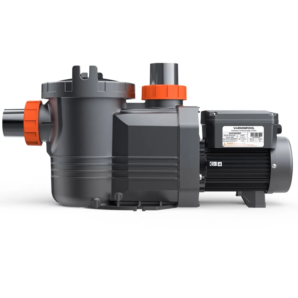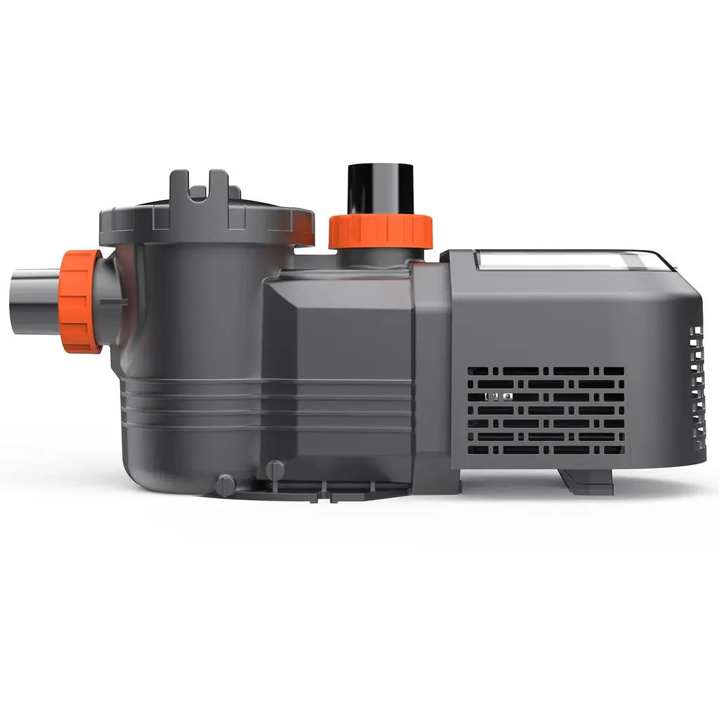 High-Performance 2.5HP Pool Pump: This variable speed pump is ideal for above ground and in ground pools, featuring a permanent magnetic motor and precision designed impeller for a maximum flow rate of 10567 GPH with exceptional energy savings Advanced Step-less Speed Adjustment: Features an inverter-controlled step-less speed range from 1200 to 4000 RPM, with four convenient preset speeds for optimal performance across various pool maintenance tasks Efficient Centralized Control: Easily schedule pump operation with multiple time period and speed options compatible with heat pumps and filters. Keep your pool at peak condition year-round with minimal energy usage Energy Saving Operation: The variable speed pump, combined with an intelligent control unit, reduces energy consumption by up to 80%. Ideal for 24-hour operation, combine with suitable set up, it helps maintain the desired pool condition at reduced costs Rugged & Reliable Build: Constructed from weather-resistant materials and equipped with an extra protective rain shell, this pump is designed to withstand outdoor conditions, ensuring long-lasting performance and reliability Durable Flow Chamber: The pump's flow chamber is constructed from reinforced industrial-grade polymer, engineered for maximum stability against compounds in the water, ensures reliable performance in all pool conditions, including saltwater applications Pump Specification: Power: 2.5 HP / 1.8 KW. Maximum flow rate: 10567 GPH. Voltage: 220 V. Maximum head: 72 ft. Inlet / outlet size: 2.5 ''. Size parameter: L 27.2'' W 9.06'' H 13.72''. Weight: 35.71 lbs. Waterproof Rating: IPX5 Comprehensive Setup Instructions: To ensure you get the most out of your pool pump, please watch the instructional videos and carefully read the user manual for detailed setup and usage tips