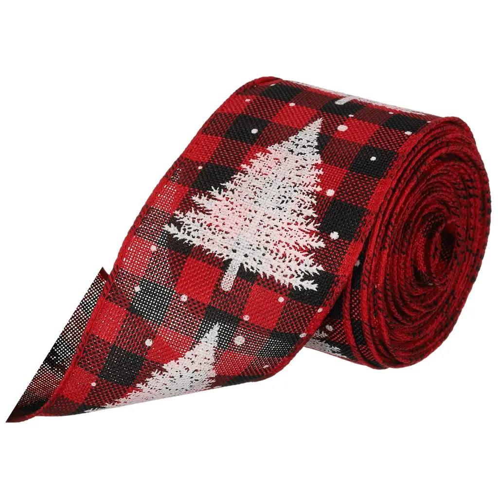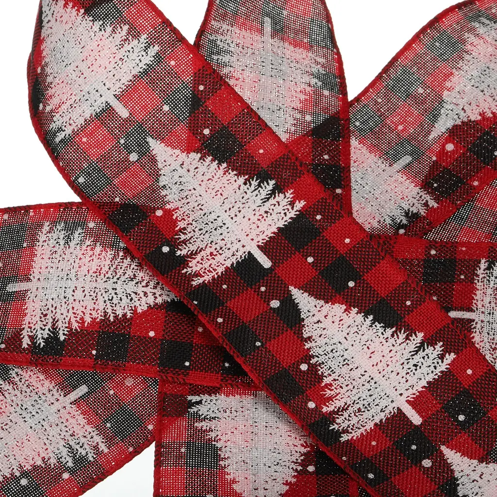 2.5 Inch X 10yard Plaid Ribbons With Christmas Tree, Wired Ribbon, Red Black - Multi
