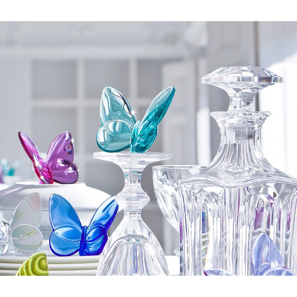 Placed anywhere in the home, the Baccarat Lucky Butterfly elicits a sense of momentum and graceful élan. Designed for Baccarat by Evelyne Julienne, this fascinating creature comes in a wide variety of colors and its poetic contours highlight Baccarat's signature craftsmanship. A small and precious lucky-charm object, the Baccarat butterfly features a diamond cut design giving brilliant reflections of light. Wherever you place it, the slightly inclined wings express span and lightness. Like in nature, this dazzling creature exists in a wide range of bright colors—a stylish gift for every occasion.