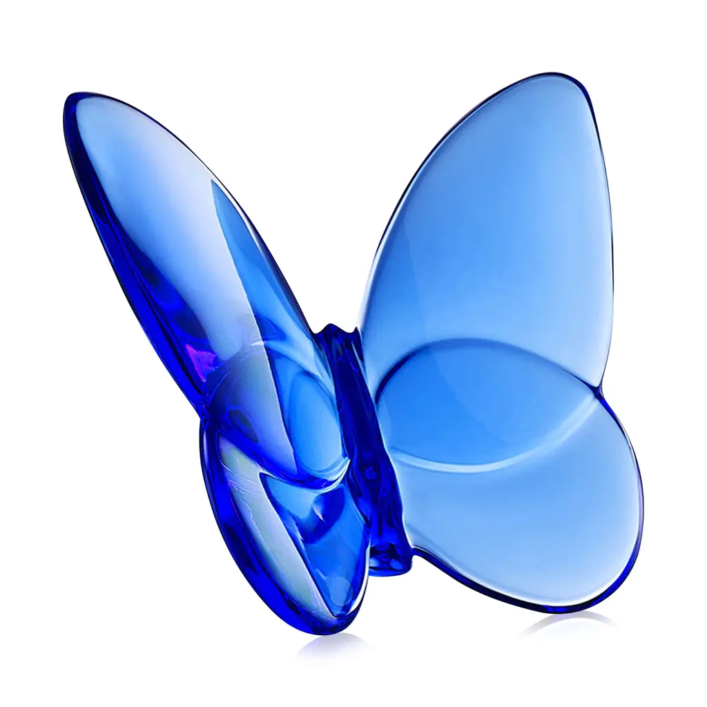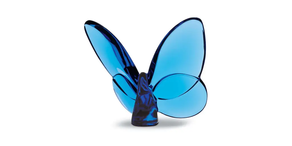 Placed anywhere in the home, the Baccarat Lucky Butterfly elicits a sense of momentum and graceful élan. Designed for Baccarat by Evelyne Julienne, this fascinating creature comes in a wide variety of colors and its poetic contours highlight Baccarat's signature craftsmanship. A small and precious lucky-charm object, the Baccarat butterfly features a diamond cut design giving brilliant reflections of light. Wherever you place it, the slightly inclined wings express span and lightness. Like in nature, this dazzling creature exists in a wide range of bright colors—a stylish gift for every occasion.