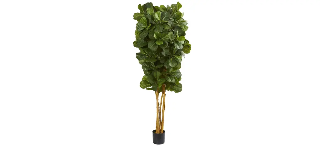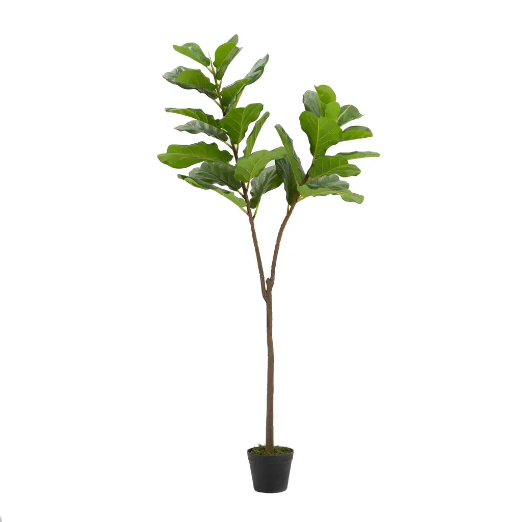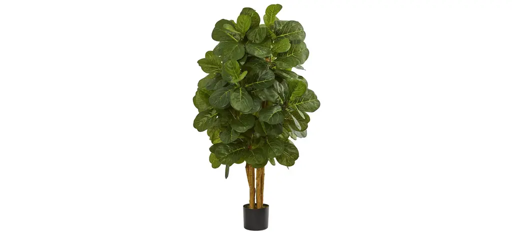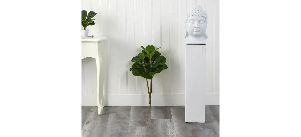 Two different sized stems - showcase large, glossy Fiddle Leaf leaves that look incredibly lifelike in the Fiddle Leaf Fig Artificial Tree. Trick all your friends into thinking that you can grow a Fiddle Leaf Fig in any indoor area. Standing 2 1/2' from a planter (included in height), curate in tight spaces. Perfect for an apartment, bathroom, foyer, awkward corner, or bedroom.