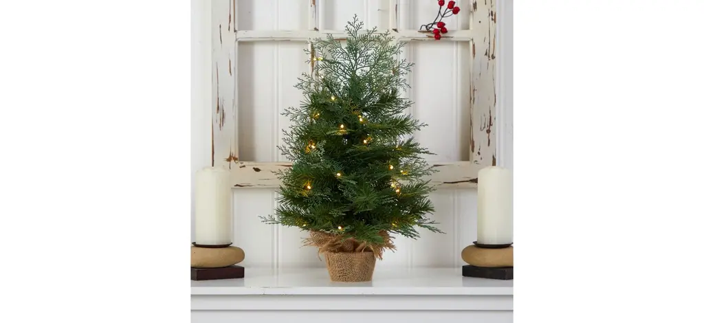 Spread Christmas cheer to compact spaces with this 2" Artificial Christmas Tree in Burlap Base with Warm White LED Lights. Inspired by nature and crafted from high-quality materials, this mini Christmas tree has lifelike bendable branches, allowing you to shape in your space and add ornaments. To save you time and money, the faux tree comes with 35 warm LED lights for a cozy glow, allowing you to illuminate any space for years to come. Your artificial Christmas Tree will look beautiful for years to come; simply wipe clean with a soft dry cloth when needed.