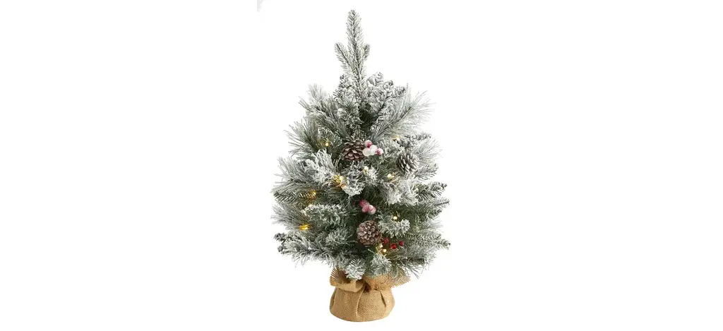 2' Artificial Christmas Tree In Burlap Base With Warm White Led Lights