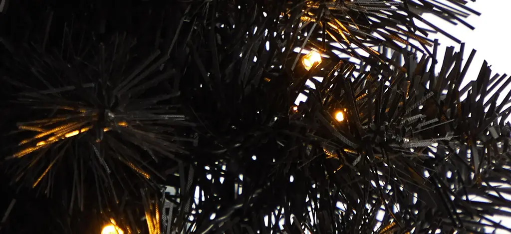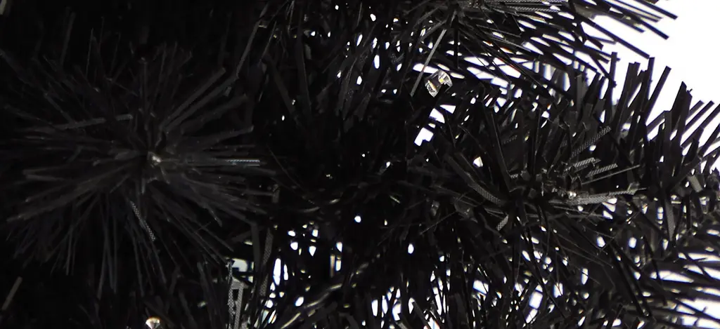 Crave a gothic Christmas or an upscale dazzling holiday season? Transform your holiday into a unique event with this 2" Black Artificial Tree with LED Lights and Bendable Branches. Inspired by nature, PVC needles display a lush silhouette that's perfect for housing your ornaments. Save time and money with the 35 LED lights, which are more energy-efficient. Why wait till Christmas? Display during Halloween, as well. Your artificial tree will look beautiful for years to come; simply wipe clean with a soft dry cloth when needed.