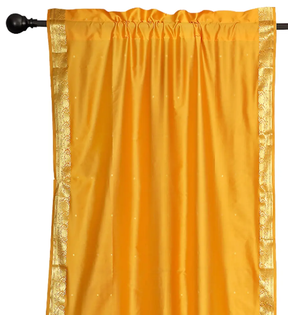 2 Boho Yellow Indian Sari Curtains Rod Pocket Window Panels Drapes