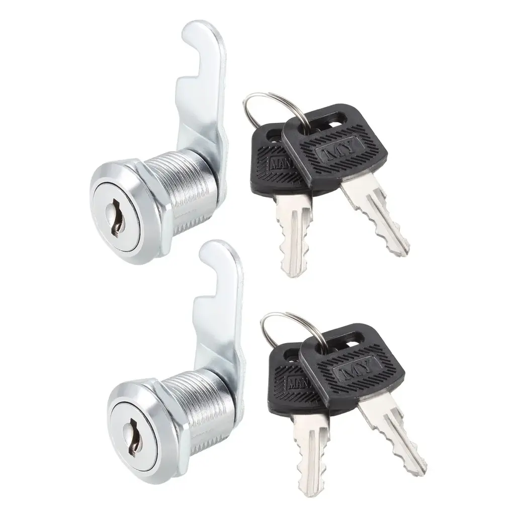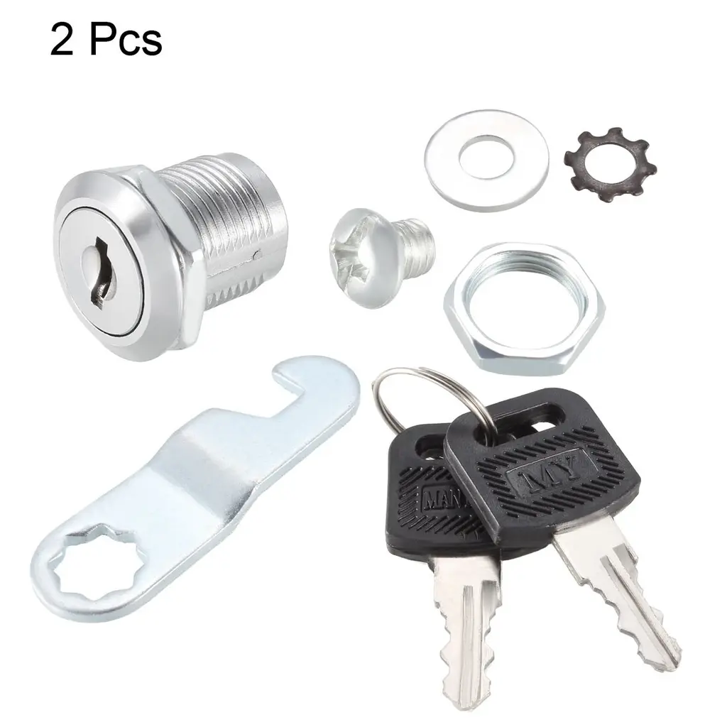 Specifications:Key Type: Keyed DifferentCylinder Length: 20mm / 0.79-inchCylinder Diameter: 17.5mm / 0.69-inchThreaded Part Length: 16mm / 0.63-inchHead Diameter: 22.5mm / 0.89-inchCam Size: 39 x 2mm / 1.54-inch x 0.08-inch (L*T)Material: Zinc Alloy, Chrome PlatedRotaion Degree: 90 Degree Package Contents: 2 x Cam Locks4 x Keys Descriptions:1. 20mm cylinder length, fits for mounting on panel thickness up to 1/2-inch.2. Zinc alloy and chrome finished will resist wear and rust over time.3. The cam lock is keyed different, non-key retaining and 90 degree rotation.4. Perfect for cabinets, doors, lockers, mailboxes, RVs, boxes, etc.5. Each drawer and cabinet cam lock comes with 2 keys.