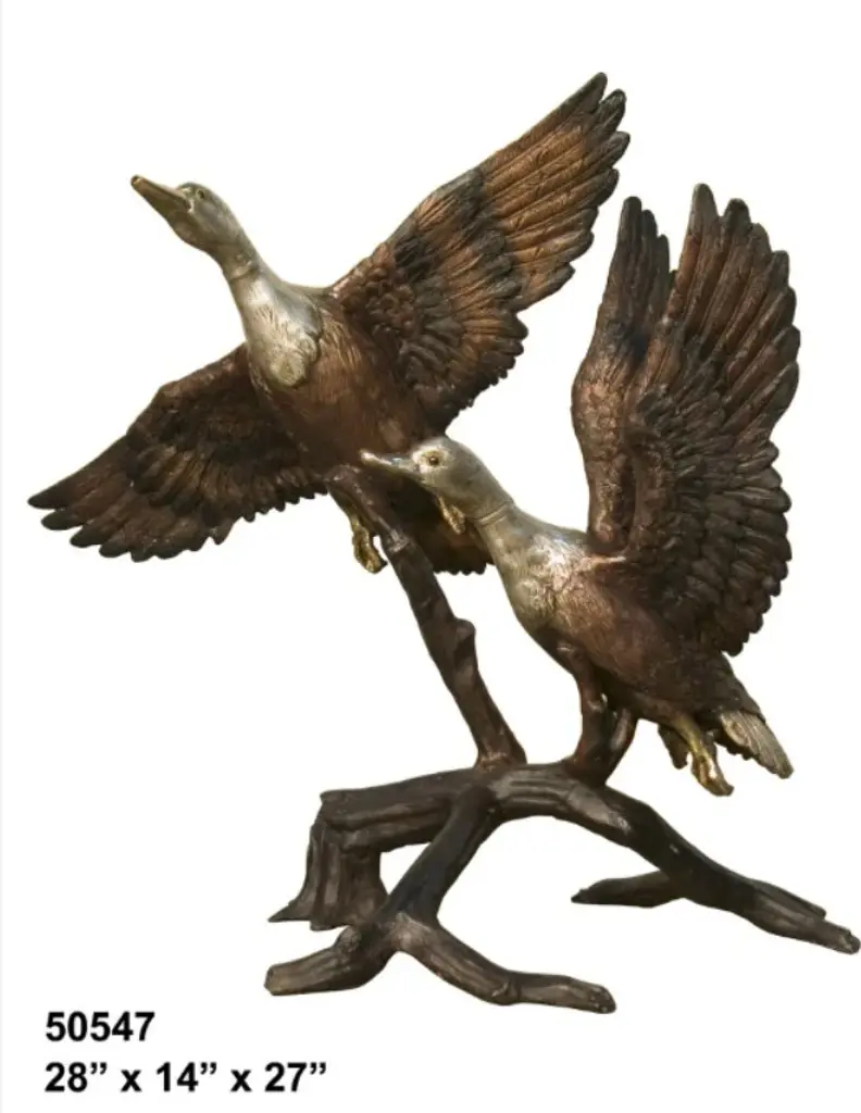 Lifelike where you can almost see them move, the "2 Ducks Taking Flight" fountain is a beautiful addition to your garden. Colored in bronze and verdigris patina.