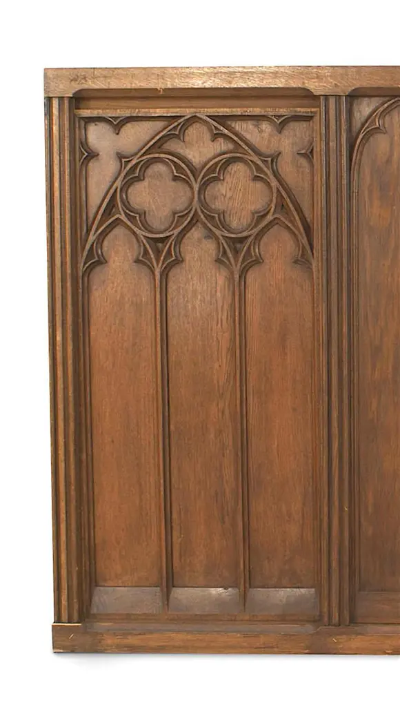 2 English Gothic Revival style (19th Century) oak paneled railings. one 85" long & one 75" long (PRICED EACH).