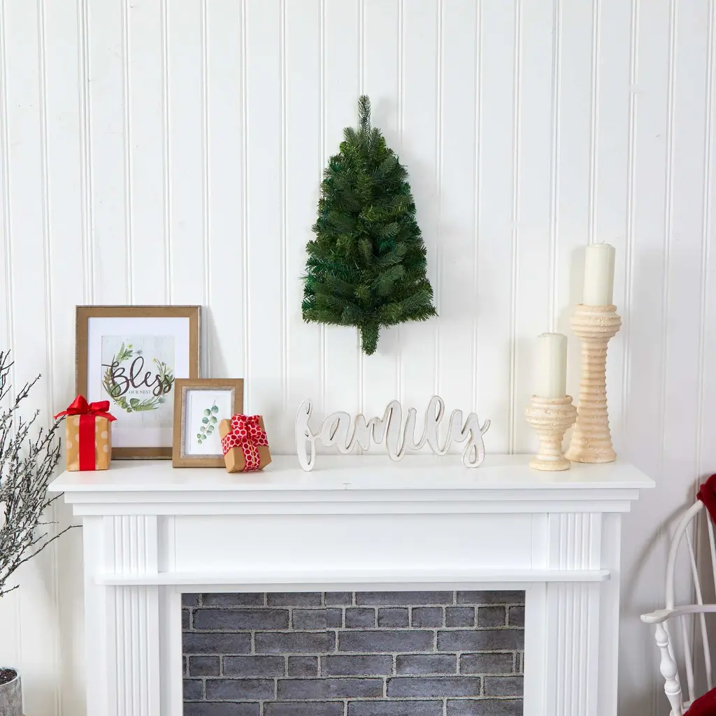 2' Flat Back Wall Hanging Artificial Christmas Tree With 20 Clear Led Lights - 11" W X 24" H X 11" D - Green