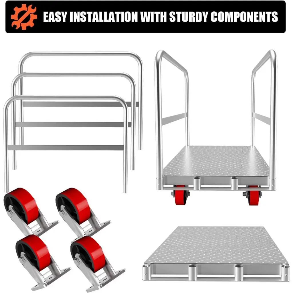 With its sturdy heavy-duty construction and versatile design, this 2-in-1 panel trolley is ideal for industrial environments. Constructed of durable carbon steel with a maximum weight capacity of up to 2,000 lbs and designed to carry heavy loads, the sturdy construction ensures stability under heavy working conditions, making it a reliable companion for lifting heavy items and providing strong support for industrial operations. Equipped with a spacious 36" x 24" platform, ideal for transporting gypsum boards and other large items, the adjustable handrail design increases safety and improves ease of operation, meeting a wide range of lifting needs and making it easy to cope with different scenarios. Equipped with 4 rubber casters to ensure easy movement and stable operation, seamless loading, unloading and storage in a variety of environments, whether on smooth floors or in complex workplaces, providing a smooth user experience and making lifting more efficient. The cast iron wheel design provides superior strength and durability to ensure that the heavy duty trolley maintains its performance in the most demanding working conditions, while the robust construction and reliable materials make it ideal for industrial environments, providing long-lasting security. Whether it's a construction site, a warehouse or a home project, this industrial trolley will meet the demands of transporting heavy items, and its versatile design makes it a useful tool in a variety of scenarios, helping to efficiently complete lifting tasks and adding convenience and efficiency to everyday tasks.