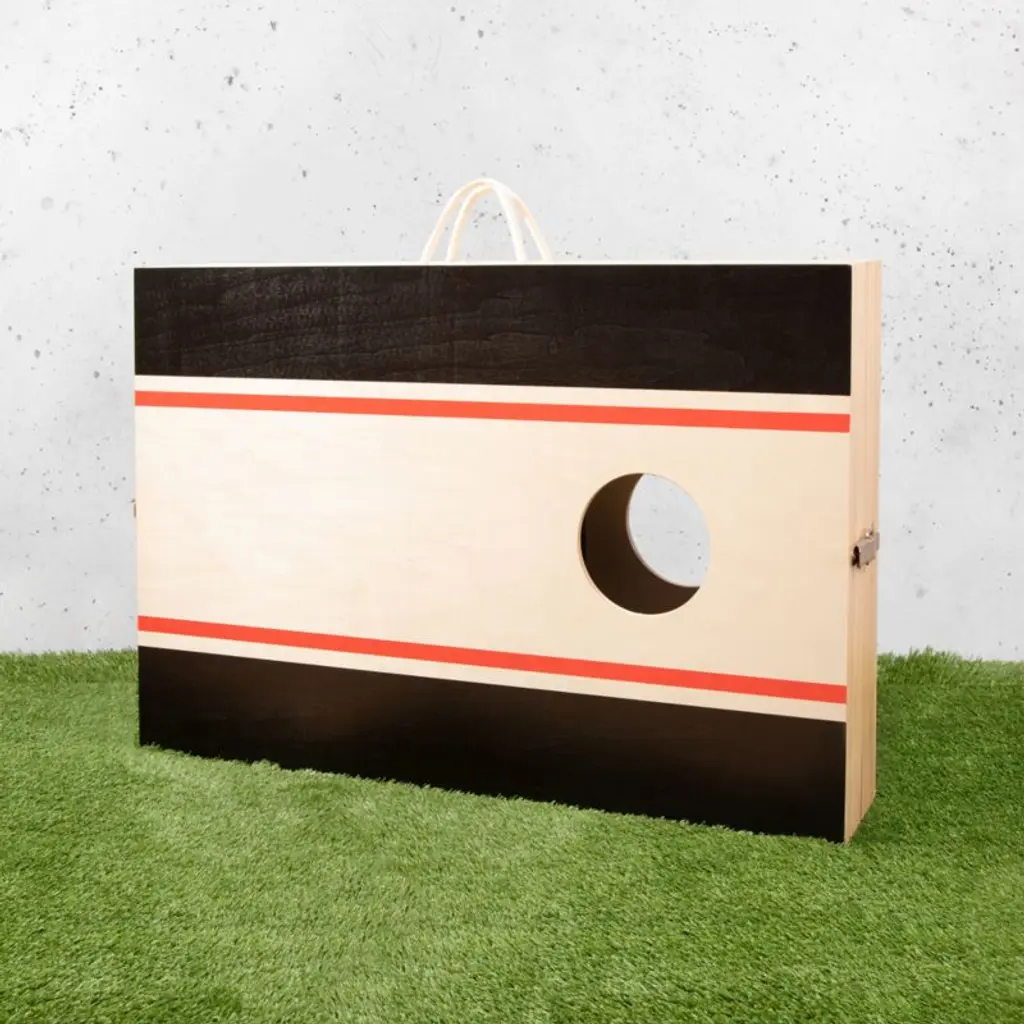 A perennial favorite at backyard gatherings and tailgate parties, our bean-bag toss game doubles up on the fun. Bags marked with Xs and Os can be used with the striped boards or as markers to play tic-tac-toe when the boards are overturned. We love its clean and friendly design.