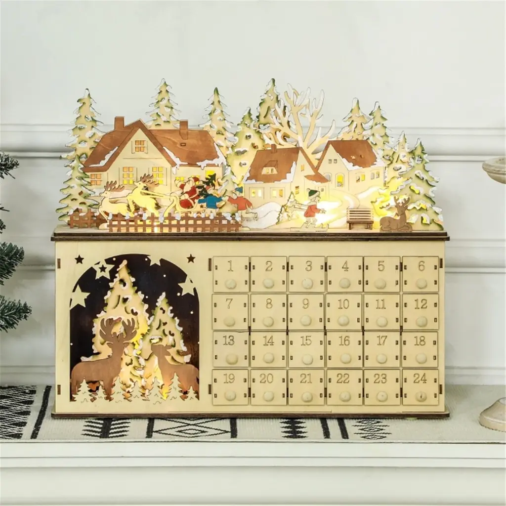 Specification:Description:Celebrate the holiday season with this 2-in-1 Christmas Advent Calendar and light-up decoration. Featuring a 24-day countdown drawer system, this calendar lets you store small notes, treats, or surprises for daily enjoyment throughout the holiday season. Perfect for any home, office, or holiday display, it fits easily on a table, mantle, desk, or fireplace. With its reusable design, this advent calendar offers year-after-year festive fun, saving you money and hassle each Christmas. Pre-assembled for your convenience, it provides a quick and easy setup for a bright and festive holiday countdown.Key Features: