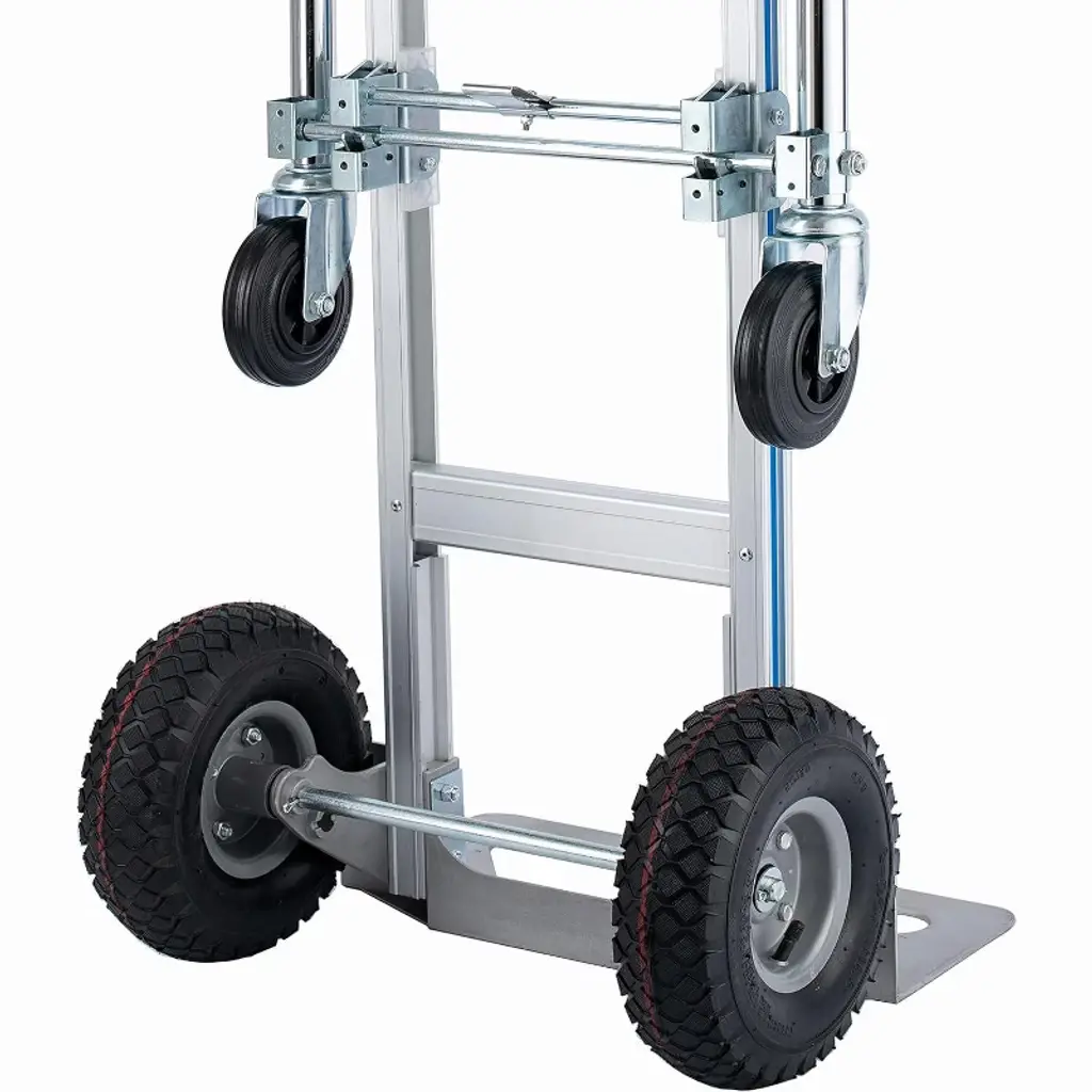 This 2-in-1 convertible hand truck and dolly makes heavy lifting simple and efficient. Switch quickly between upright and platform cart modes to accommodate bulky or heavy items for moving, delivery, or warehouse use. The lightweight aluminum frame ensures both strength and portability, while pneumatic tires guarantee smooth transport on different surfaces. Assembly is quick and straightforward, making this utility cart a versatile tool for both home and professional settings.