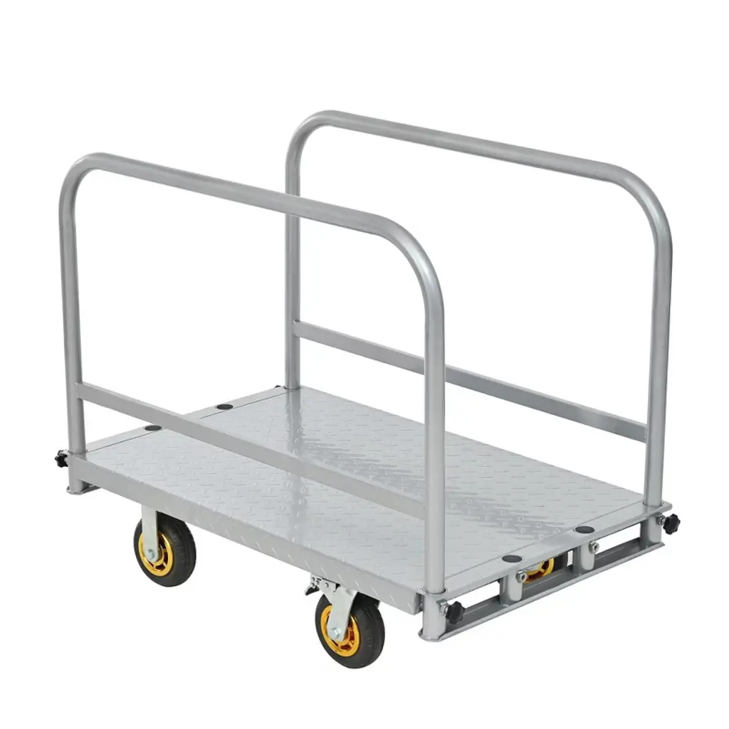 Tackle the toughest hauling tasks with this 2-in-1 heavy duty panel truck cart. Constructed from robust carbon steel, it features a large platform and adjustable handrails to easily transport drywall, sheet goods, and other bulk materials. Four rubber swivel casters provide effortless maneuverability and stability in any workspace, while the impressive weight capacity makes it ideal for industrial, warehouse, and construction environments. Durable design ensures lasting reliability for all your heavy transport needs.